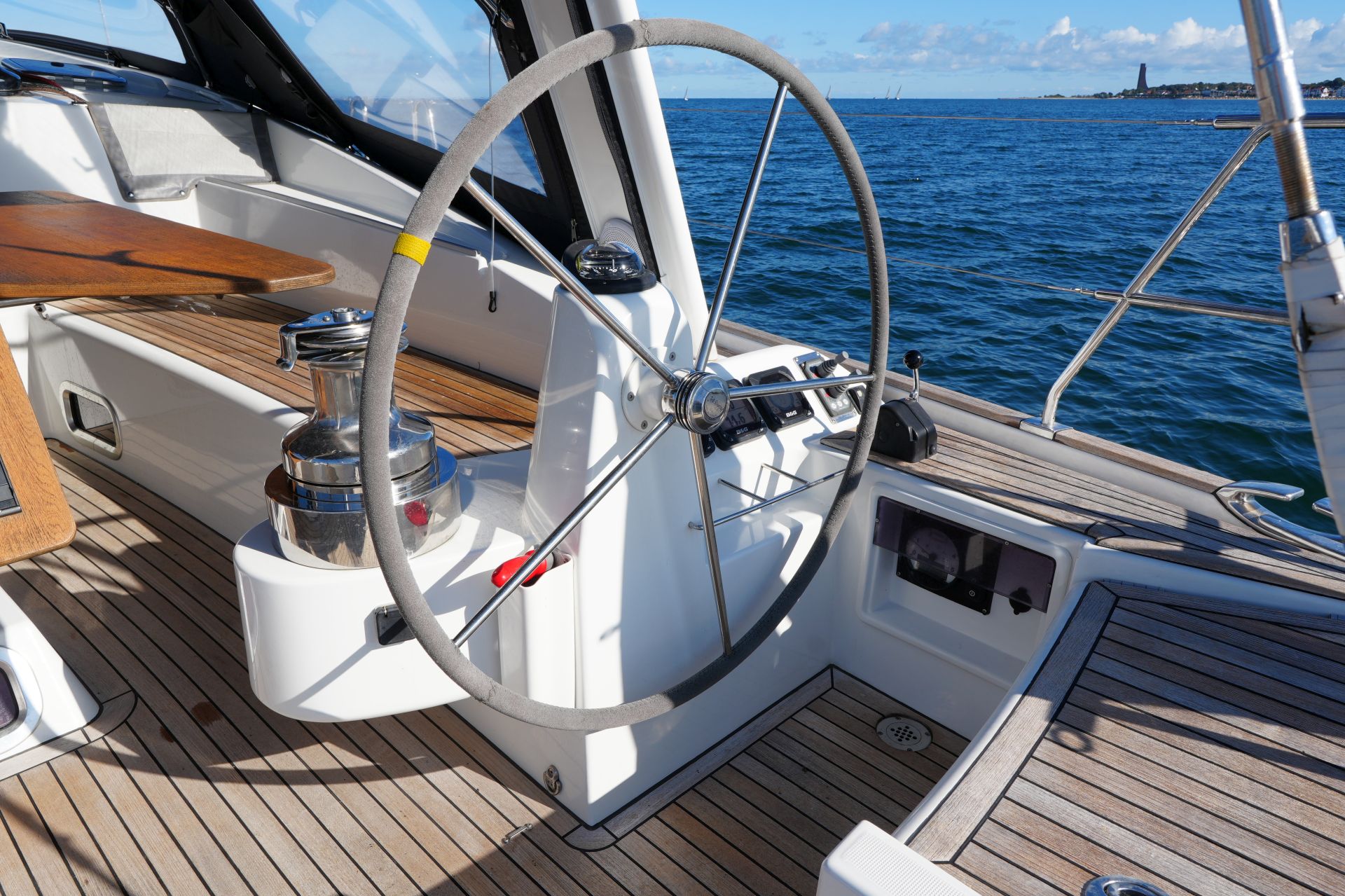 - Tagabügel zur Aufnahme der Großschot mit LED-Cockpitbeleuchtung und Außenlautsprechern