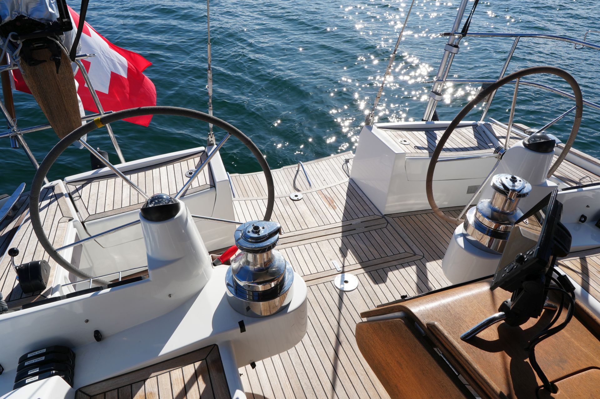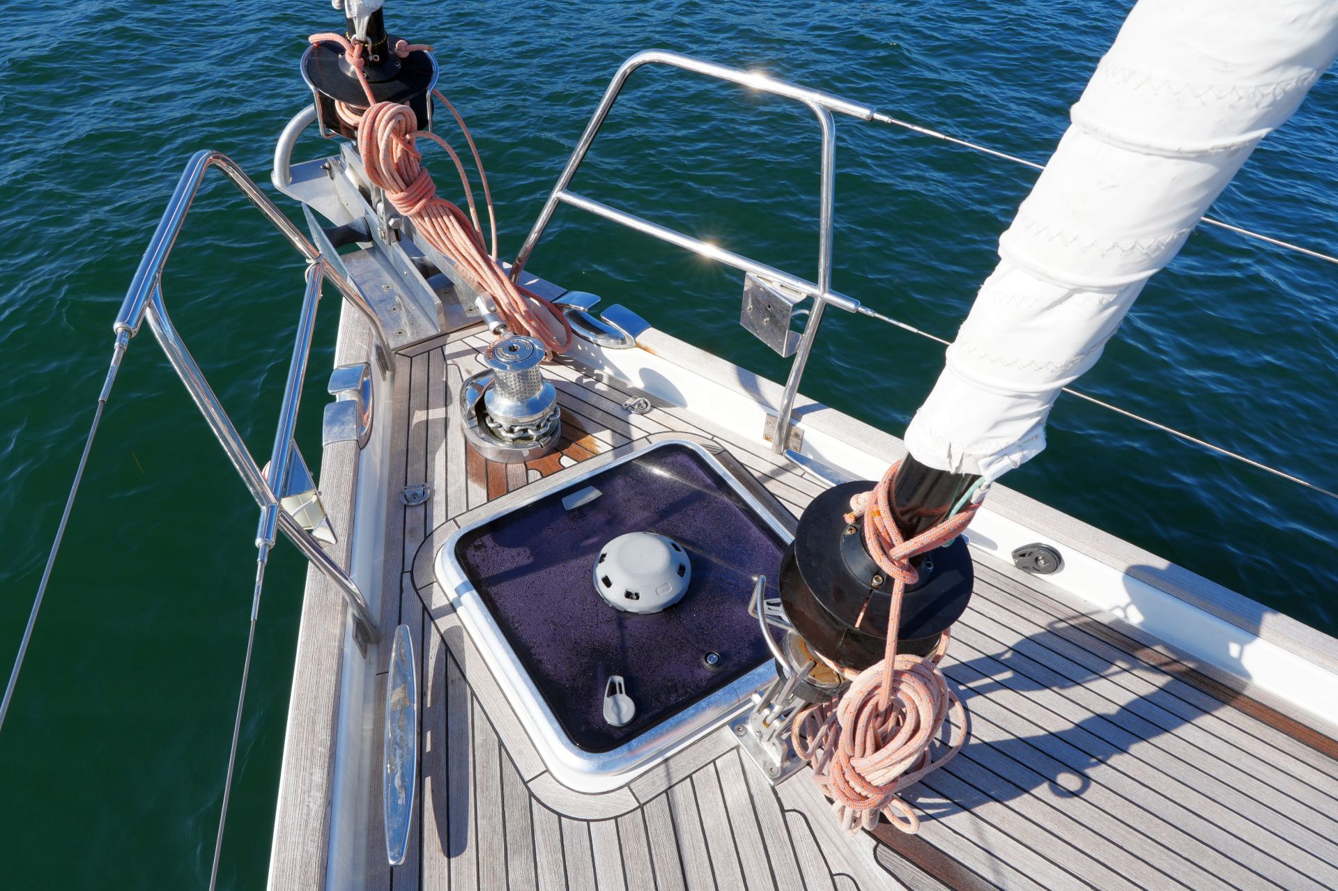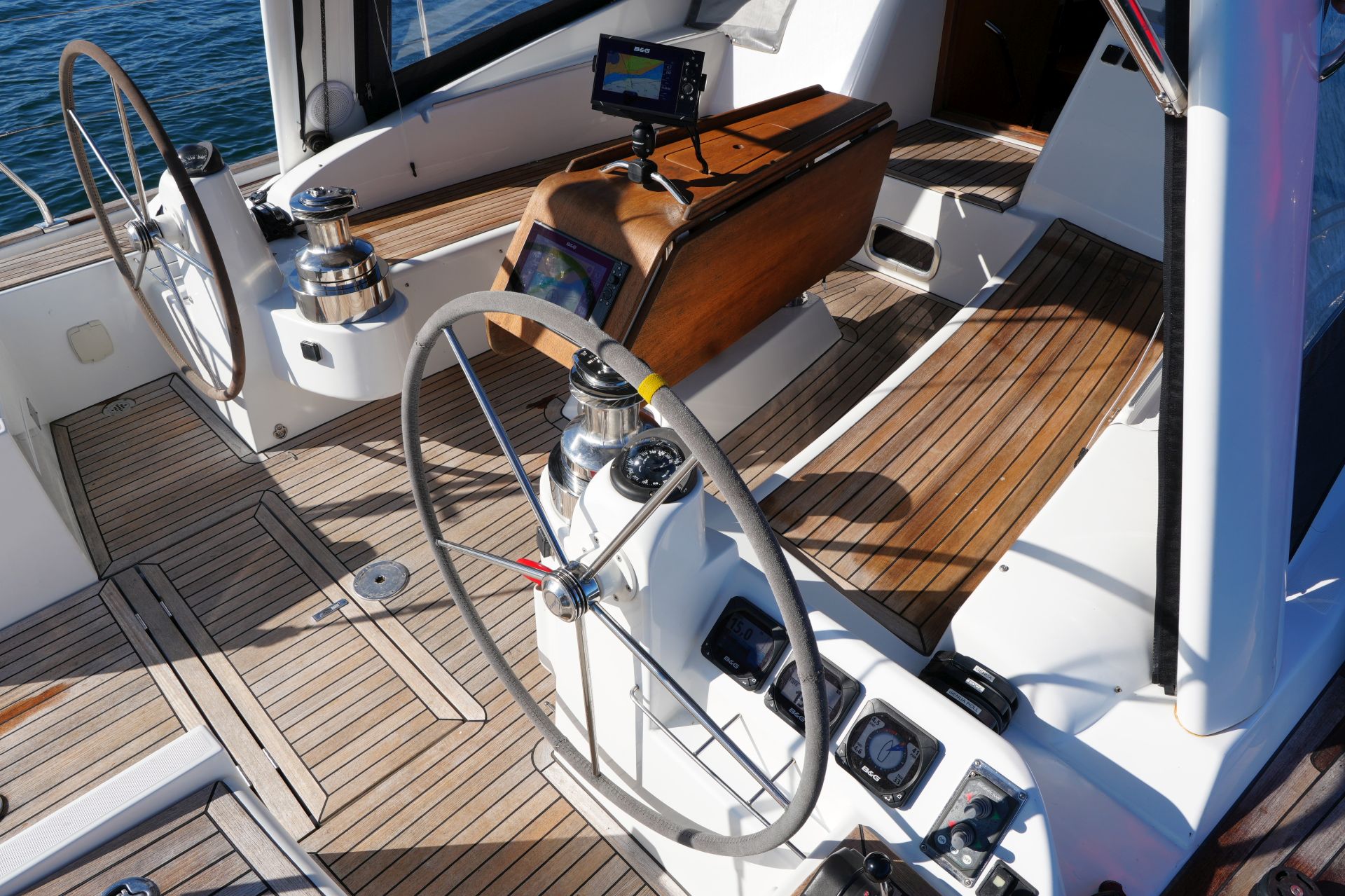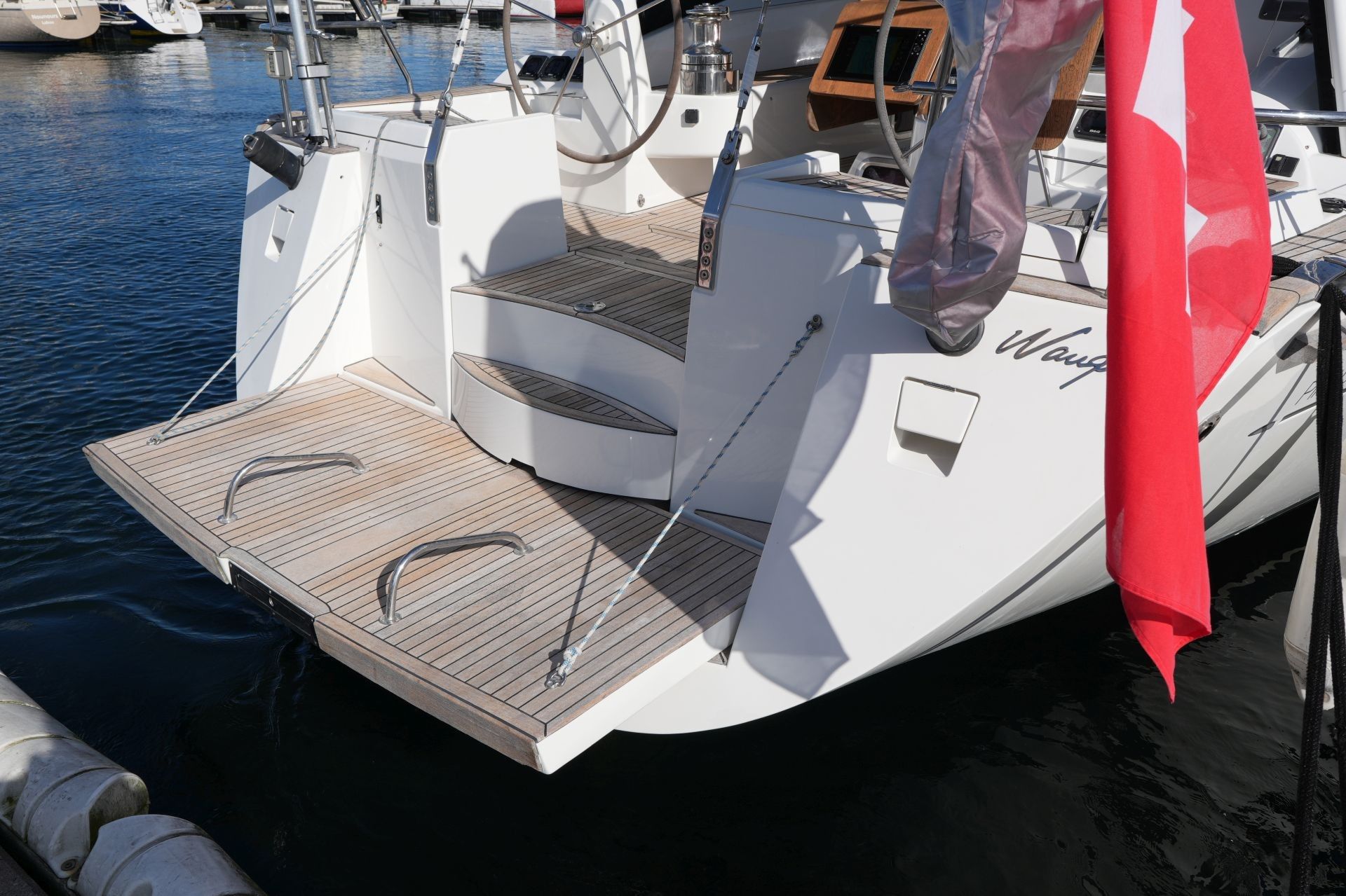 - Teak auf Seitendecks, vorderem Aufbaudach, Badeplattform und im Cockpit