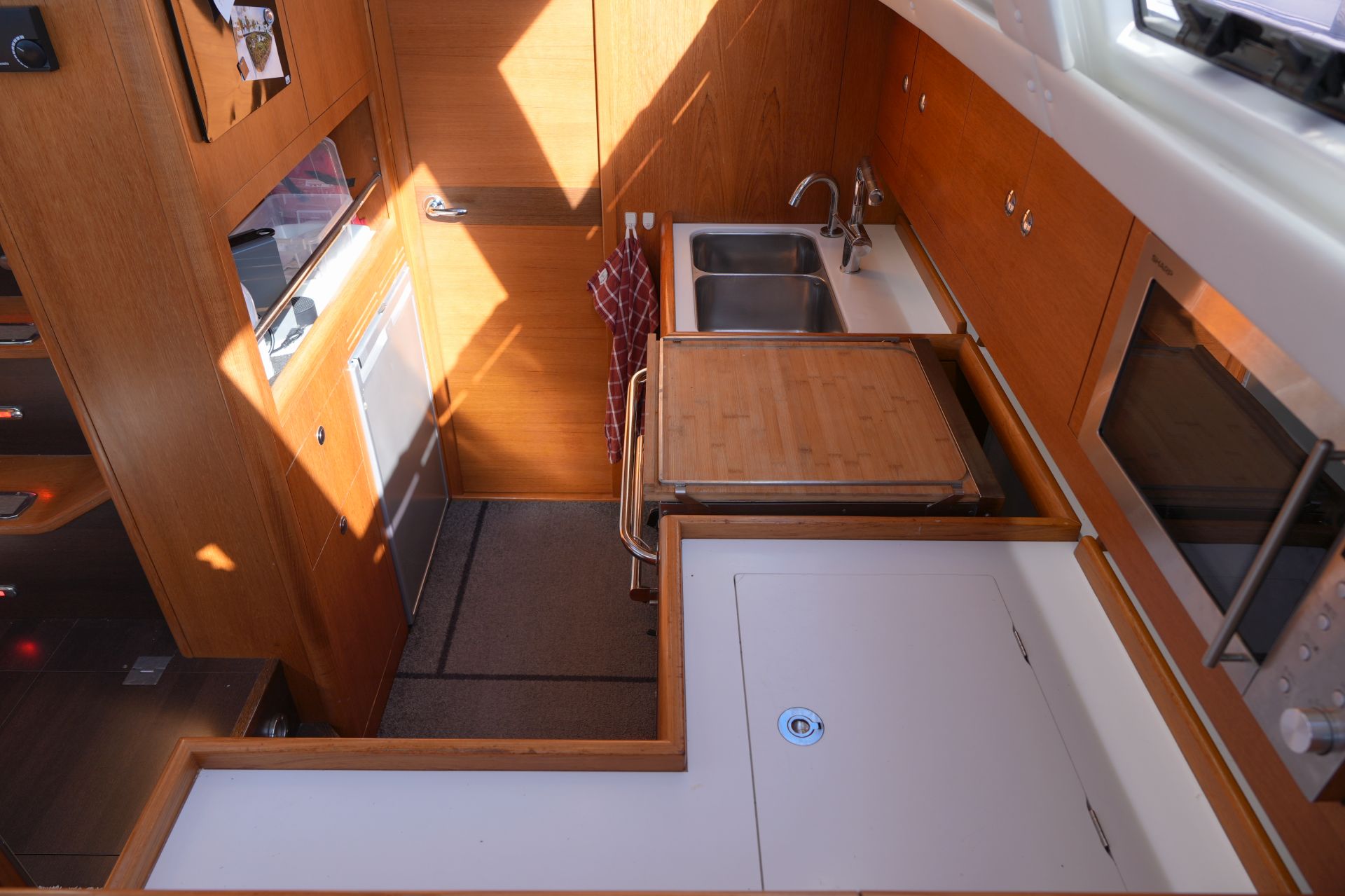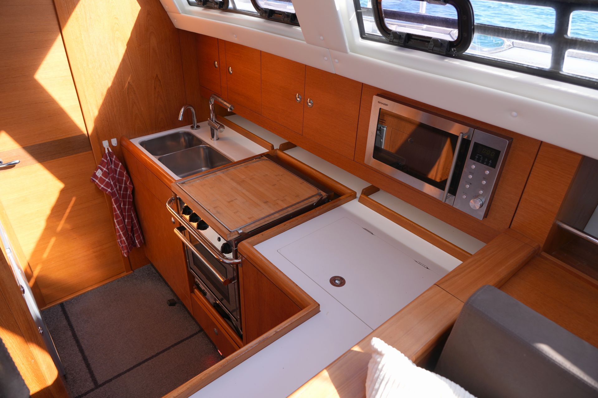 - Pantry an Backbord auf beiden Seiten des Durchgangs zur Achterkabine