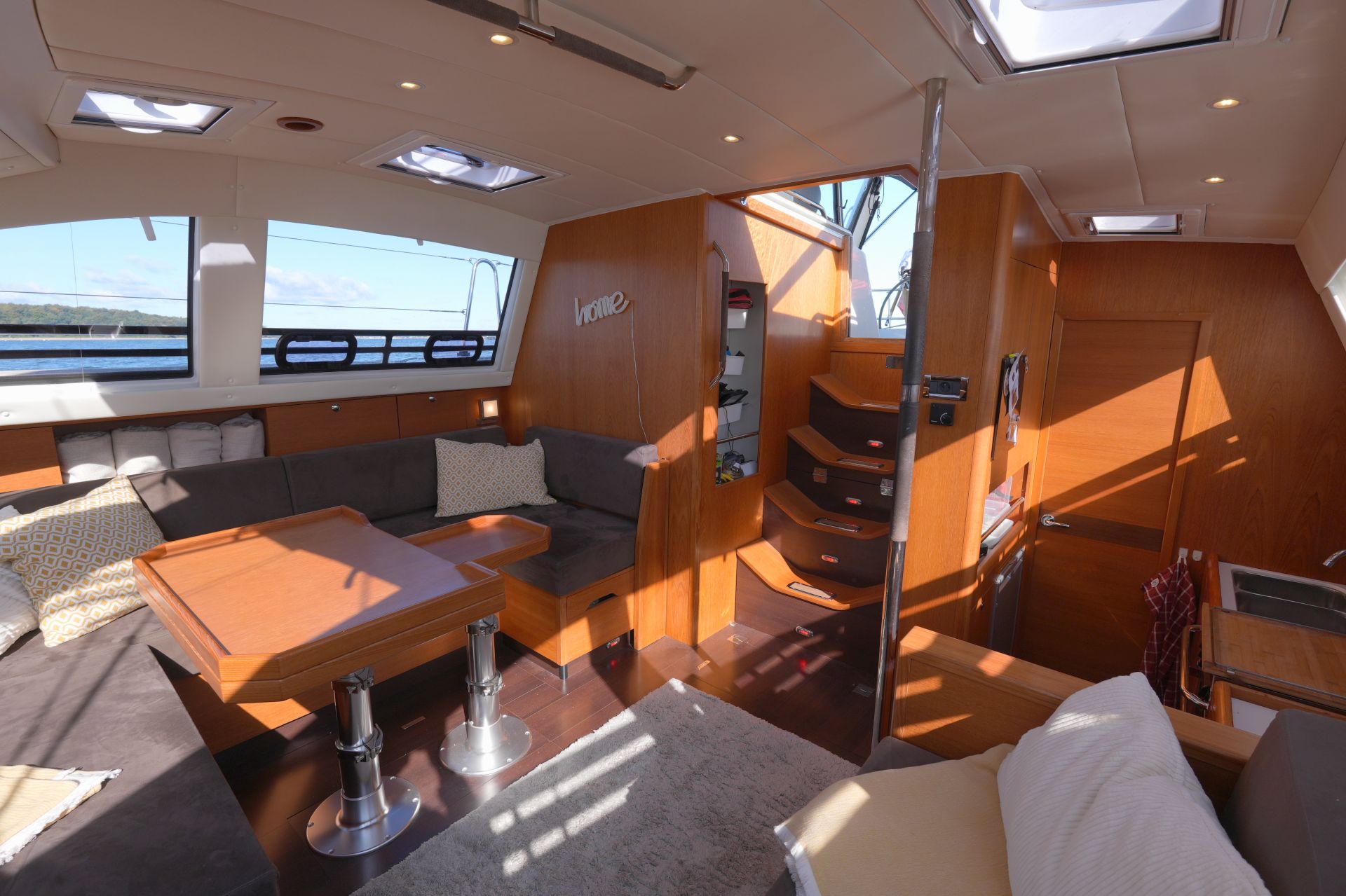 - U-förmiger Dinette um den klappbaren Salontisch an Steuerbord