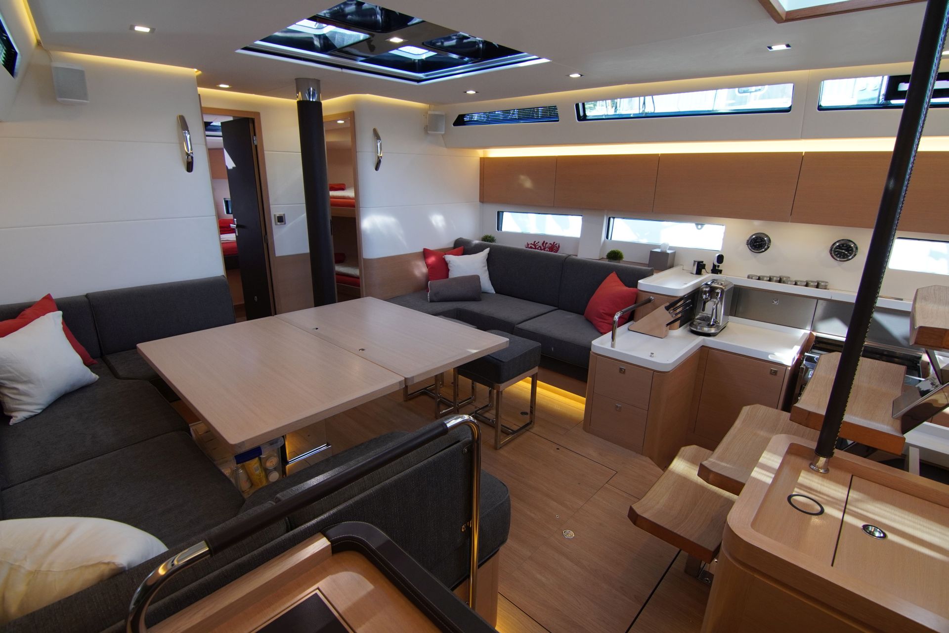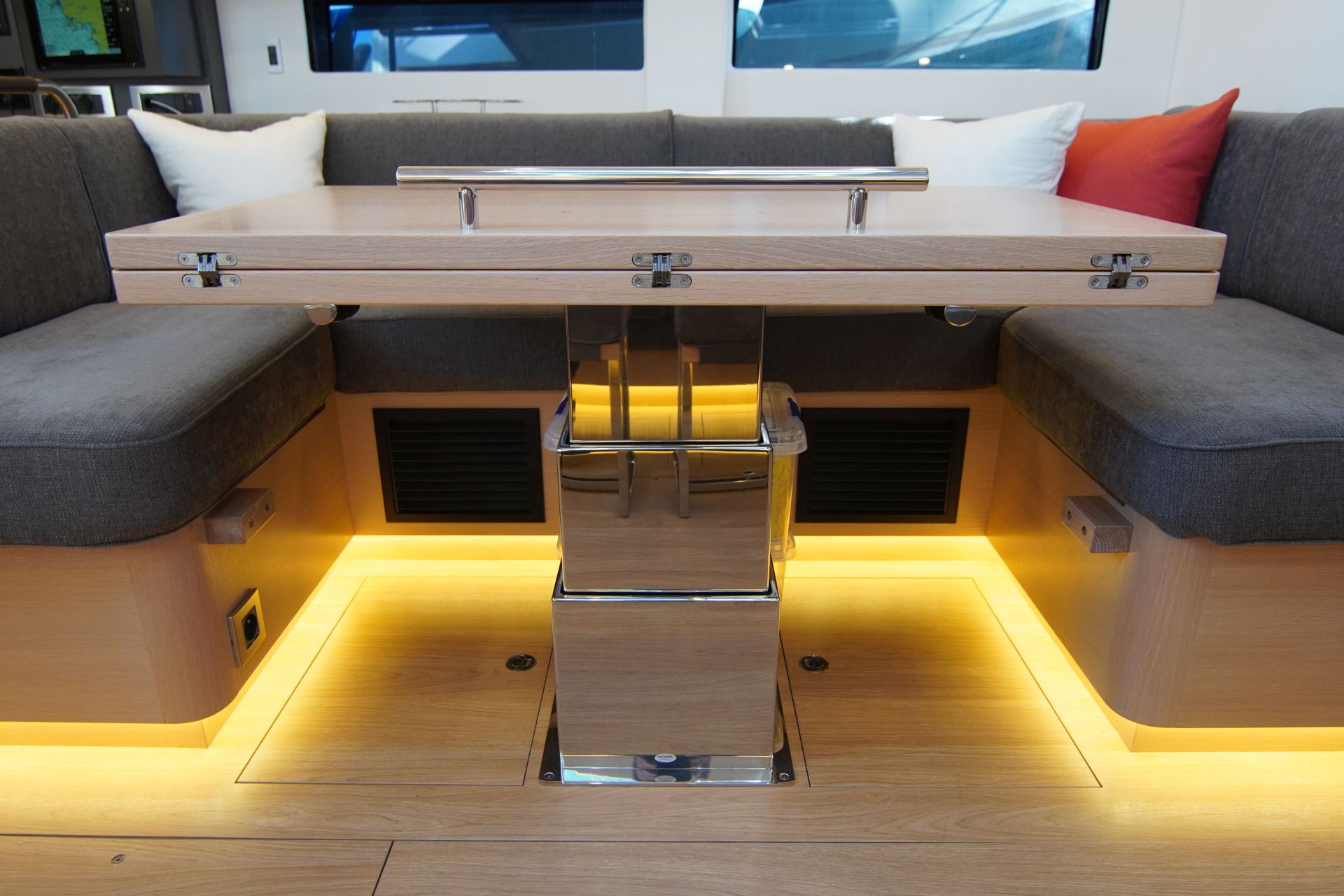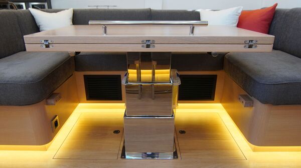 - Der Salontisch kann zu einer zusätzlichen Doppelkoje umgebaut werden