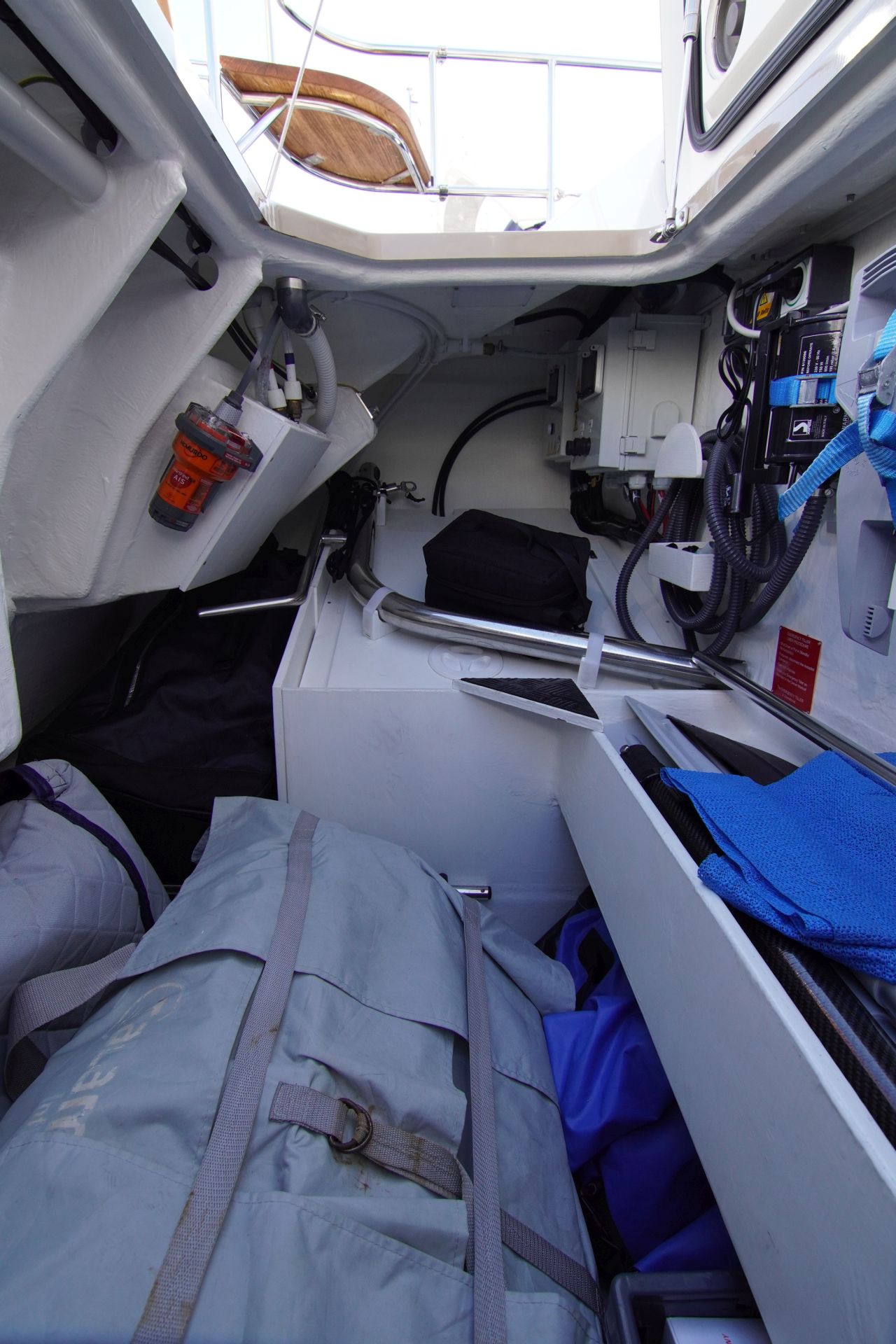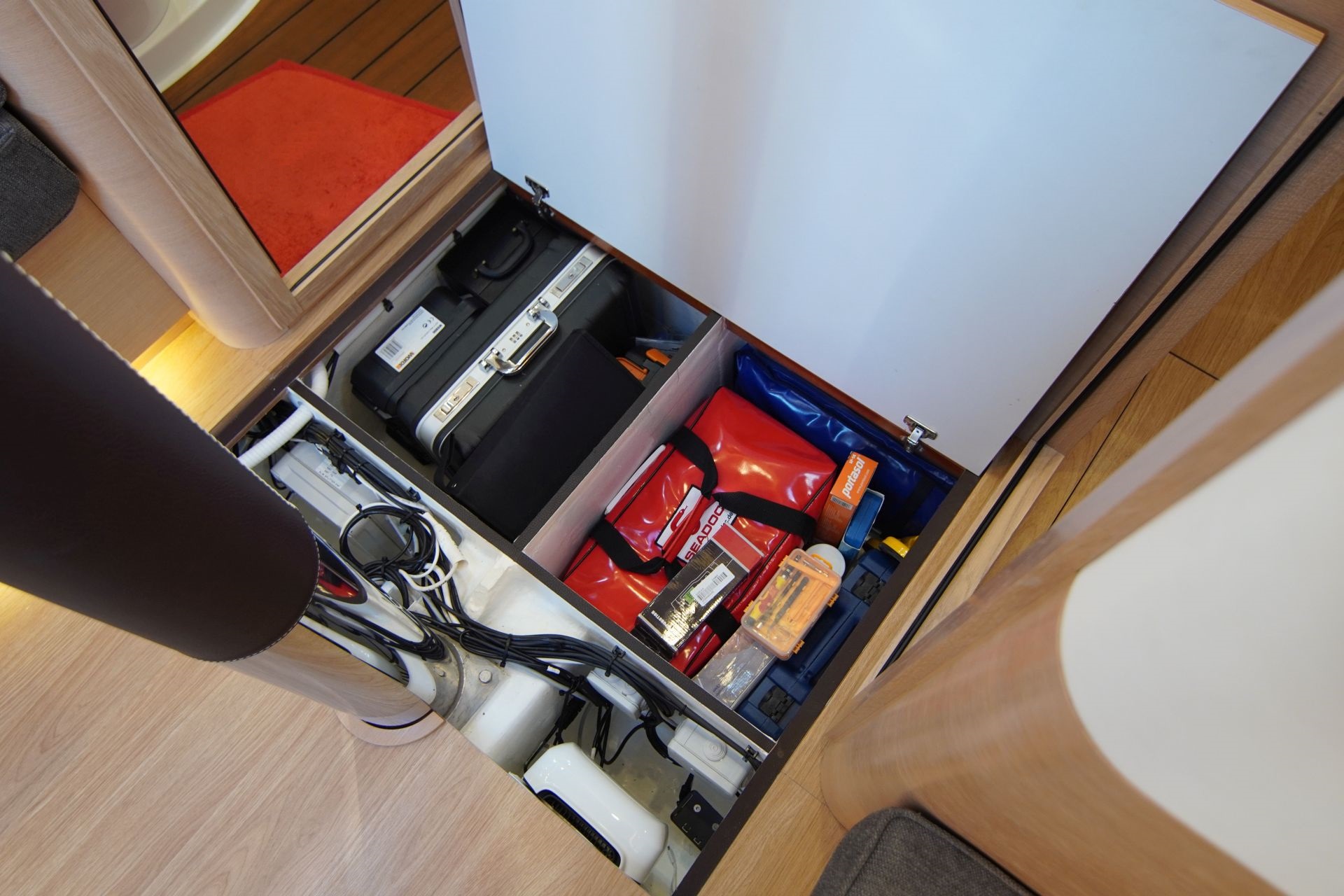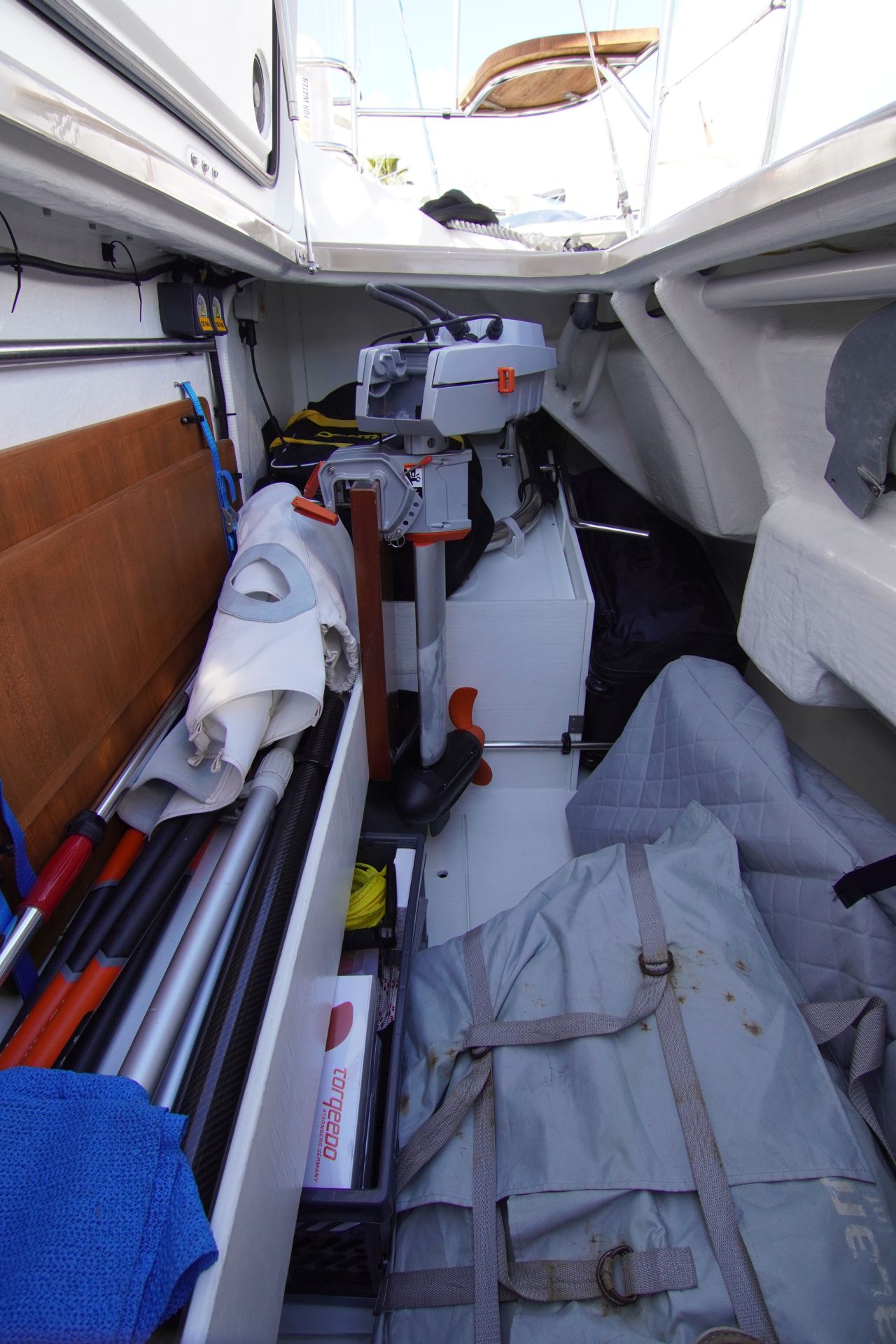 - Große Backskiste unter dem Achterdeck mit Halterung für TORQEEDO Außenborder und elektrischem Kompressor