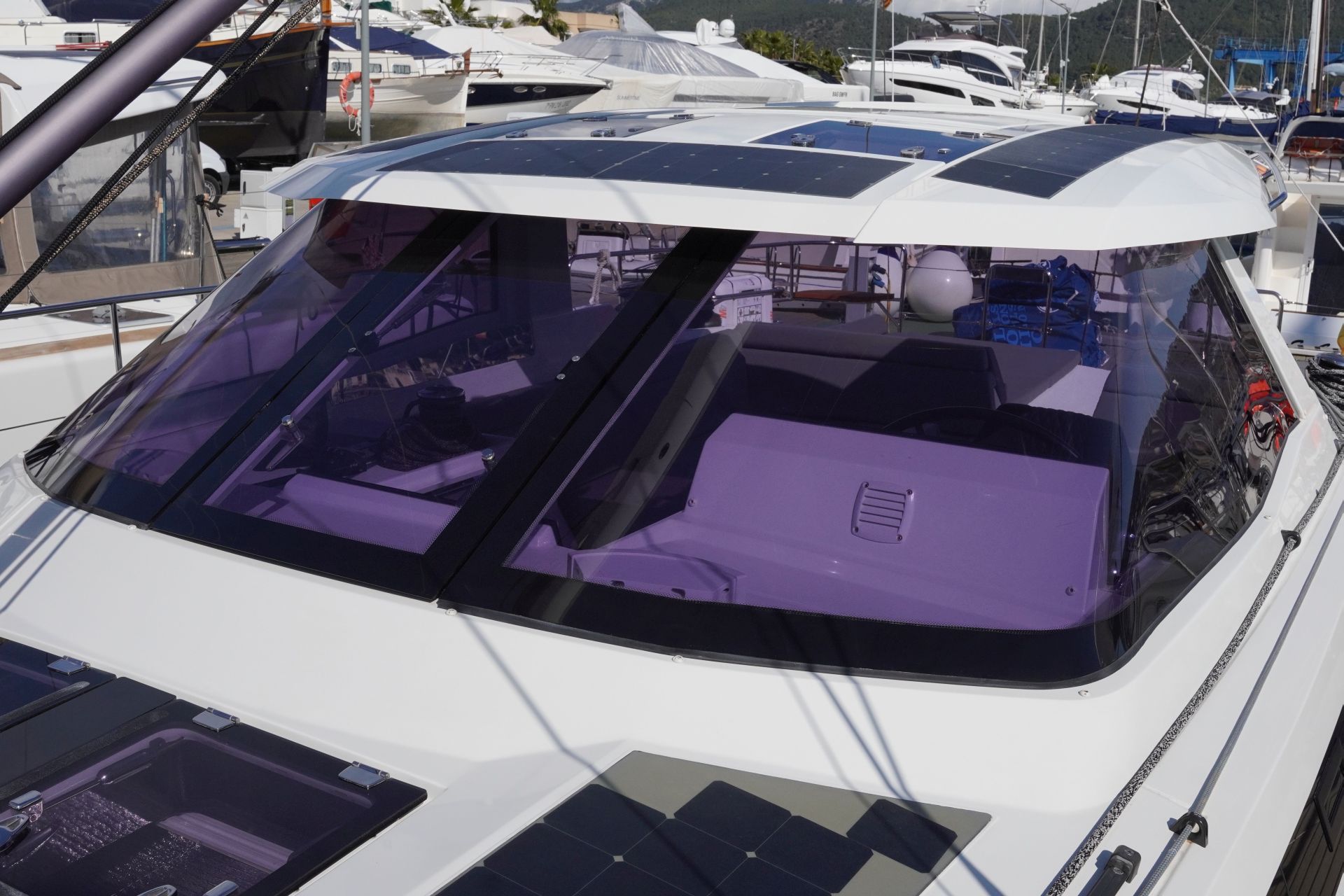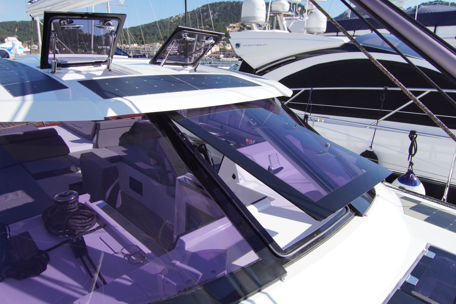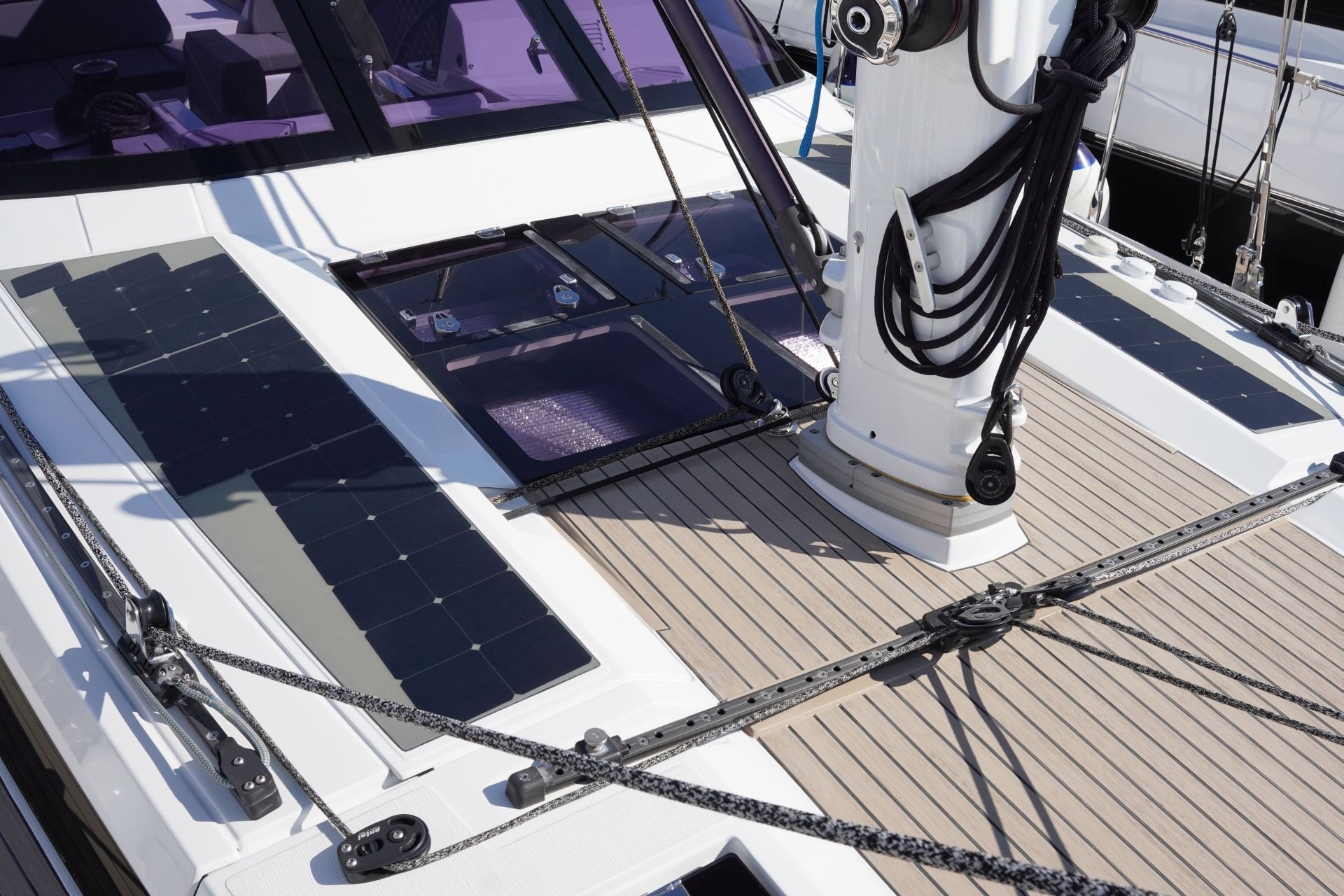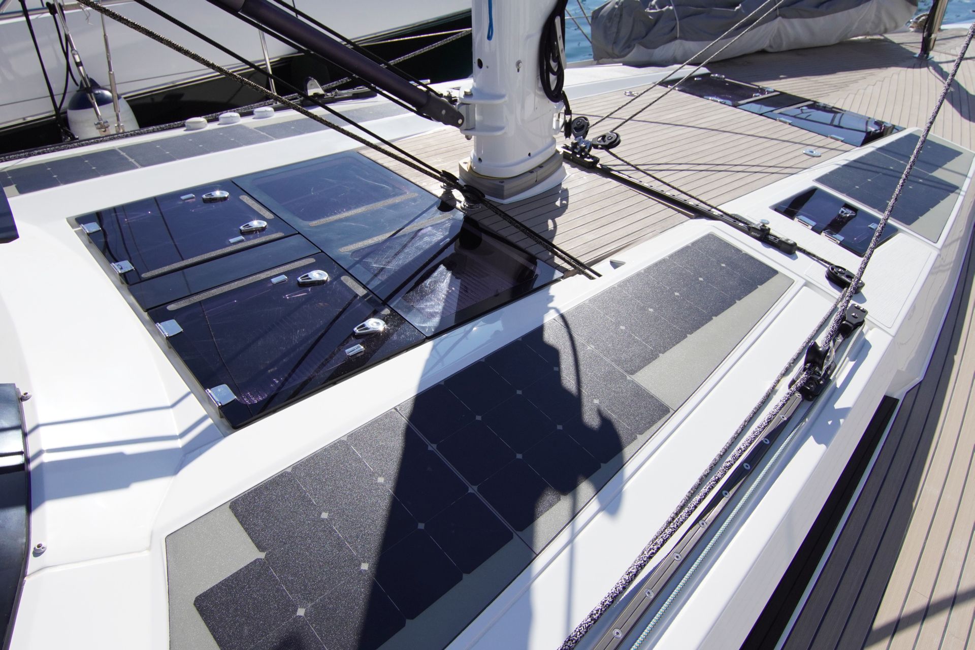 - Solarpanele auf vorderem Aufbaudach und auf Doghouse