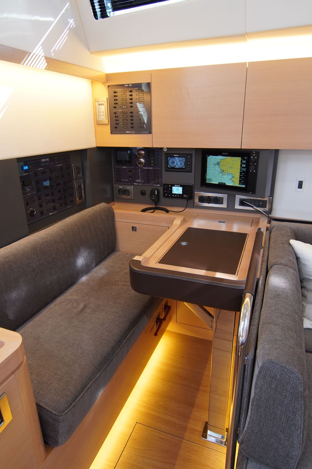 - Kartentisch in Fahrtrichtung eingebaut an Backbord achtern