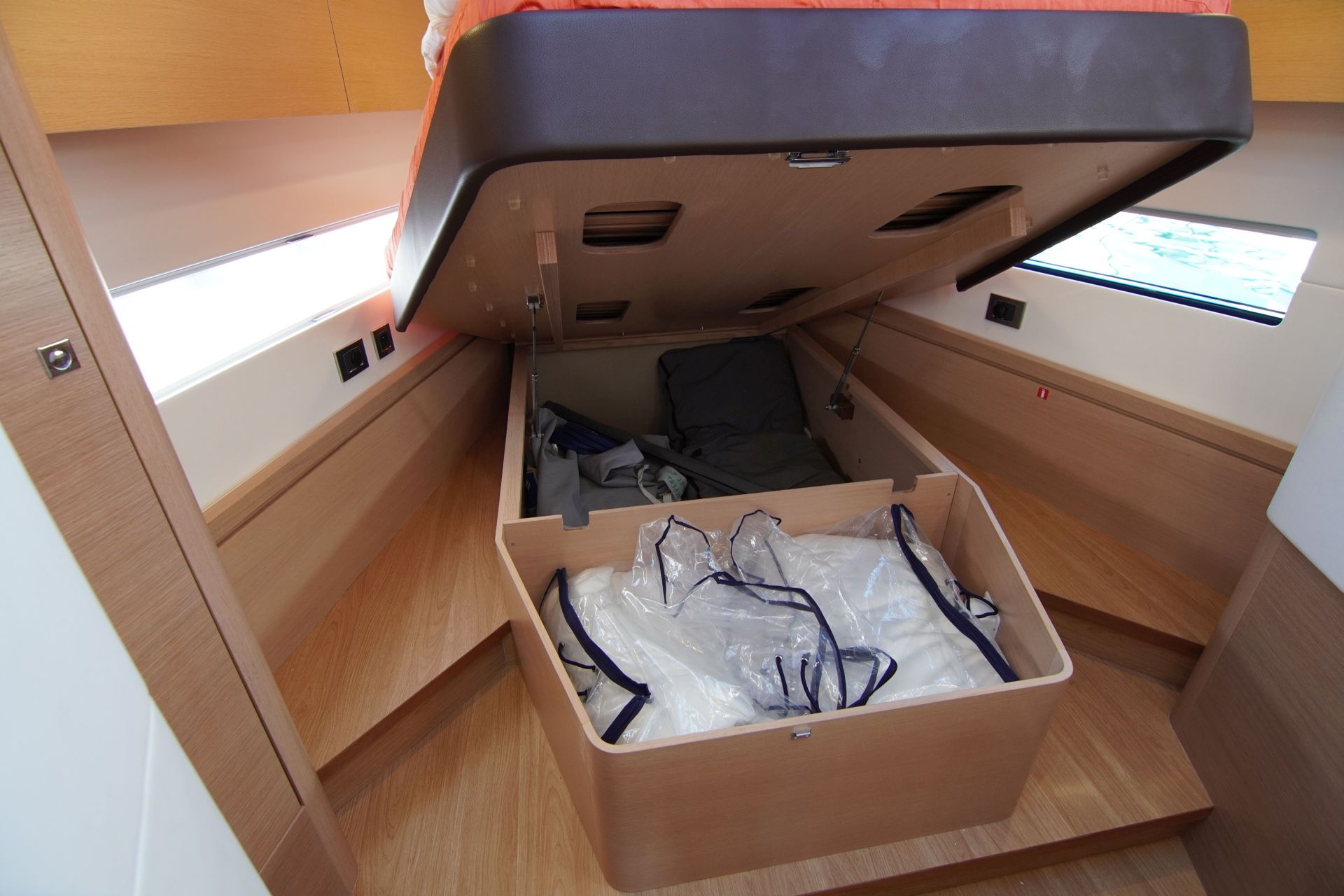 - Große Segellast im Vorschiff mit Stauraum für Fender, Festmacher und Segel