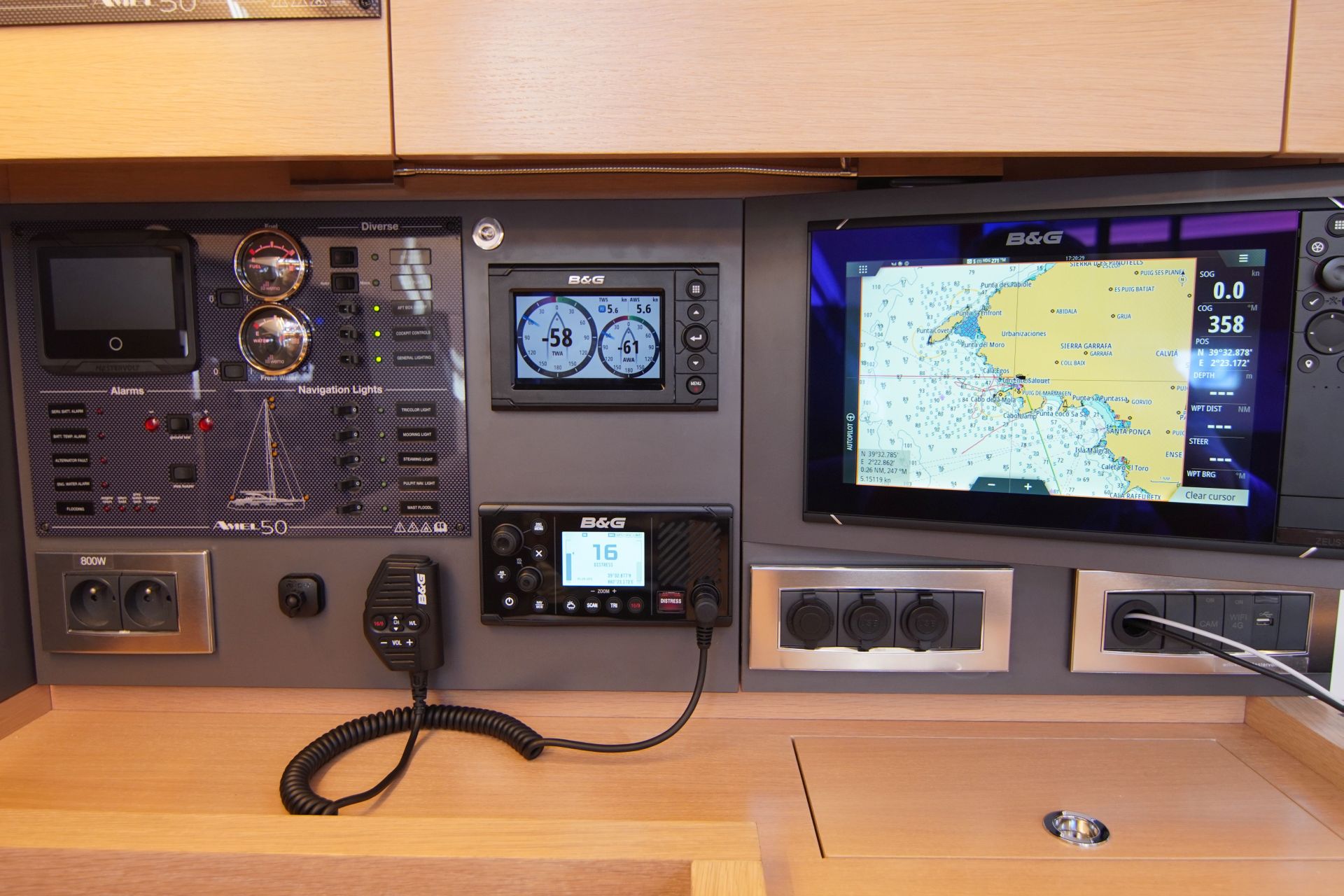Diese AMEL 50 wurde erst zur Saison 2019 ausgeliefert und befindet sich in praktisch neuwertigem Zustand. Laufende Pflege und technische Wartung. Umfangreiche Spezifikation für Langfahrt inkl. ausfahrbarem Bugstrahlruder, elektrischen Rollanlagen für alle Segel, elektrischen Winschen, Klimaanlage, Dieselgenerator 8 KW, Lithium-Batterien, Watermaker, Oscar Kollisions-Verhütungssystem usw. Heller Ausbau in Eiche und weiß bespannten Panelen. Im März 2022 wurde ein 3Di-Segelsatz von NORTH-Sails geliefert. Das Titelbild ist ein Prospektfoto.