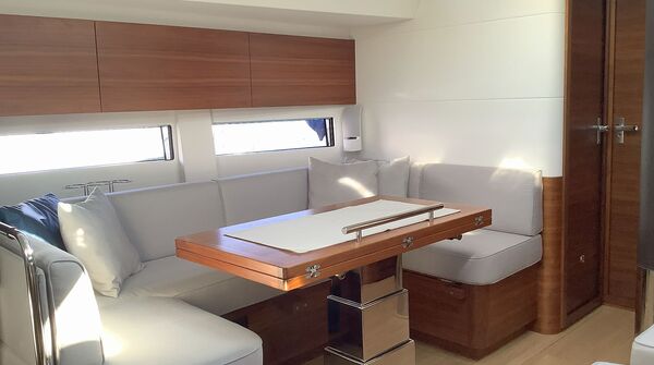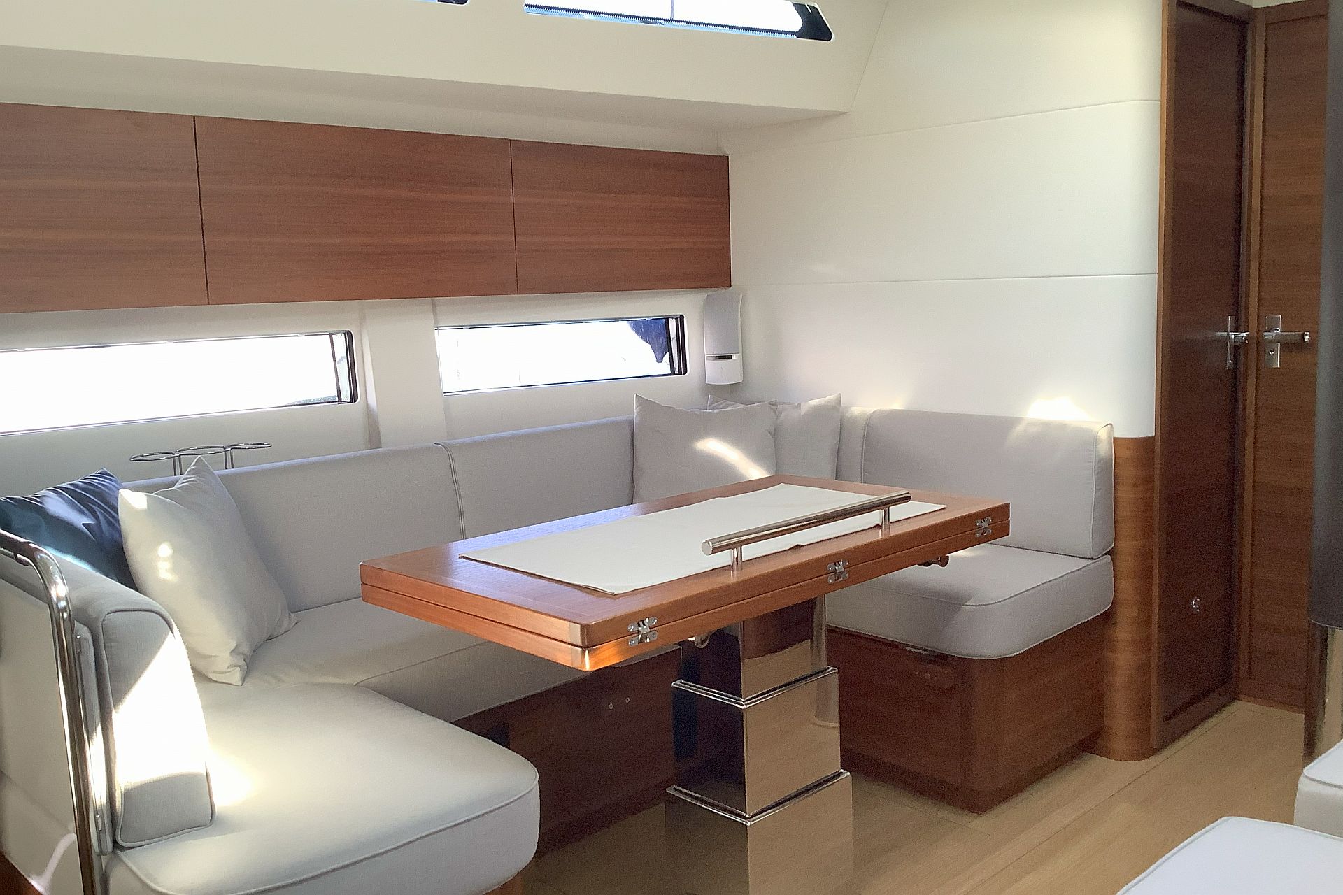 - Der Salontisch kann zu einer zusätzlichen Koje umgebaut werden