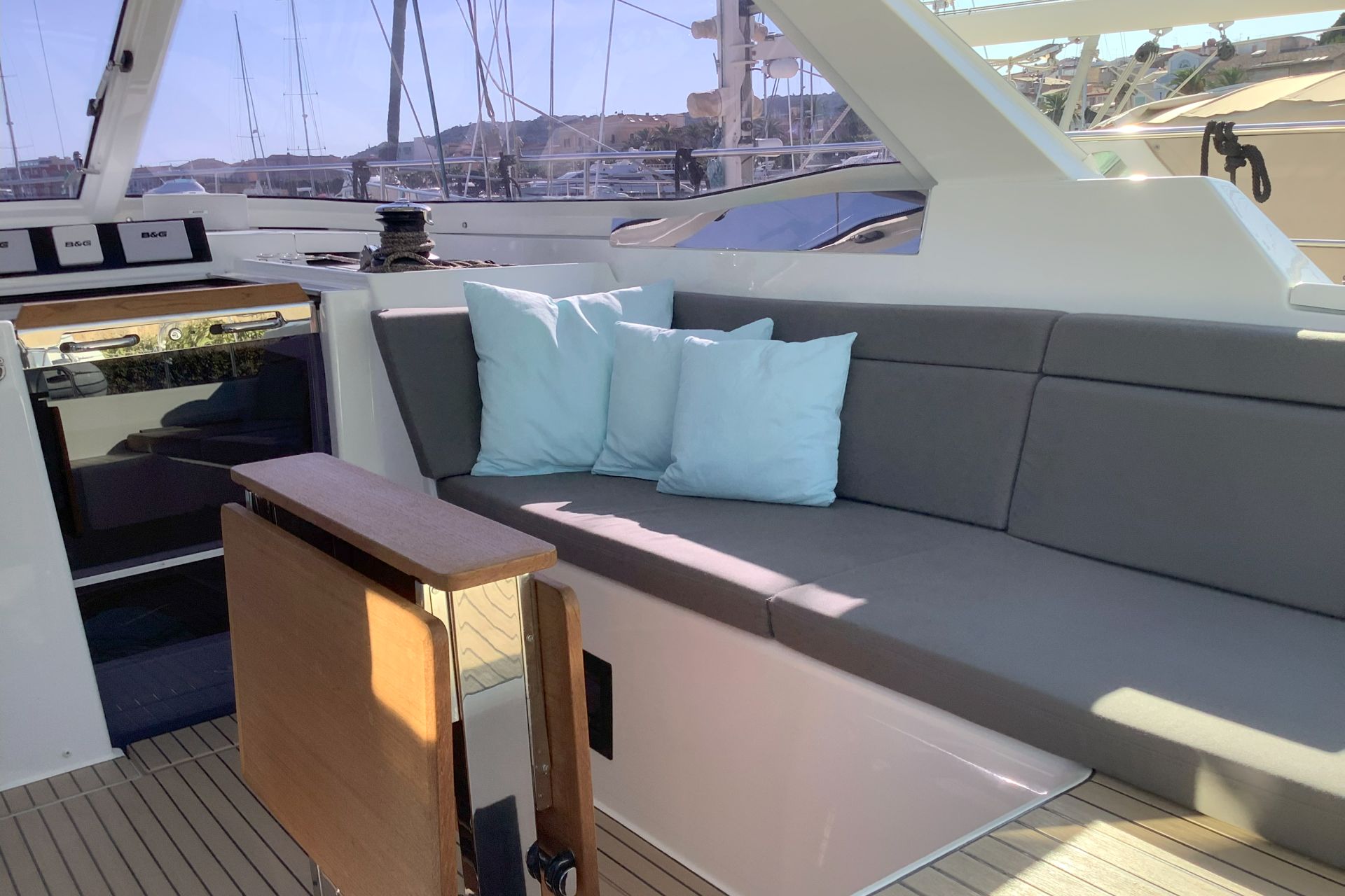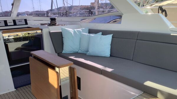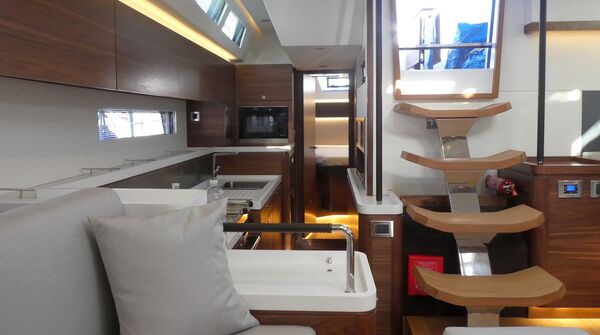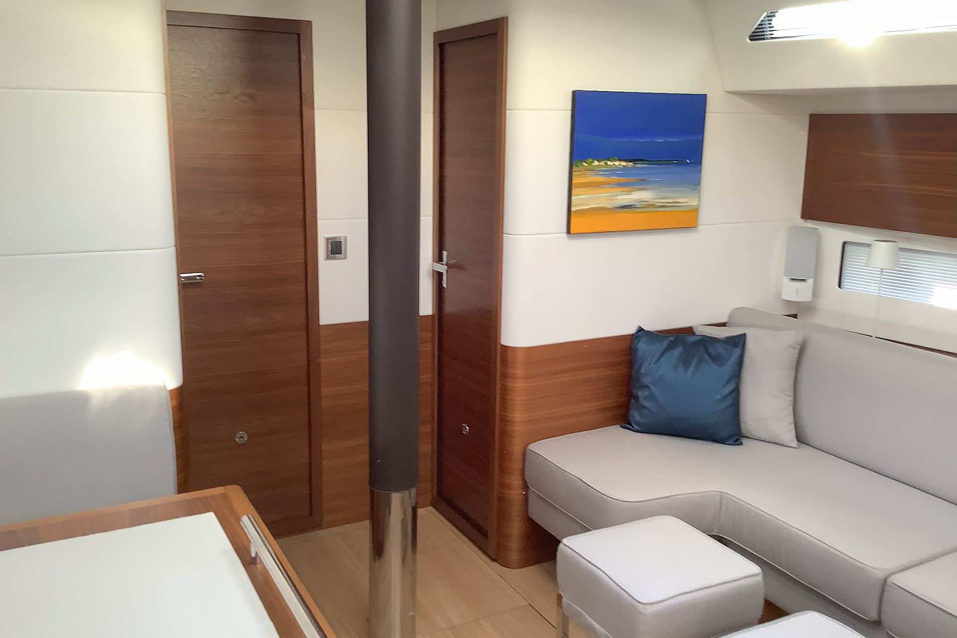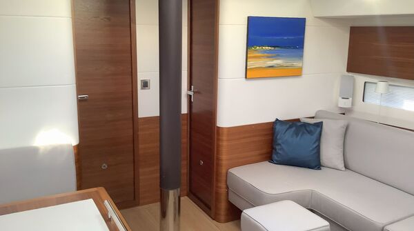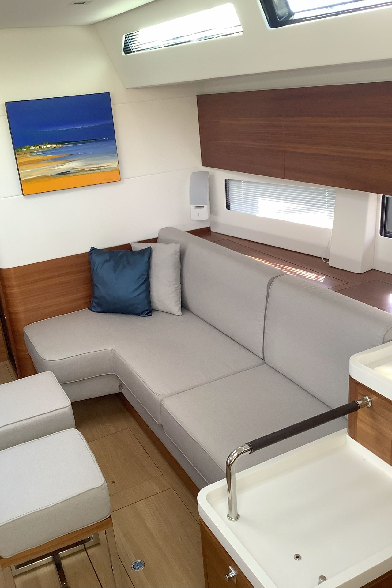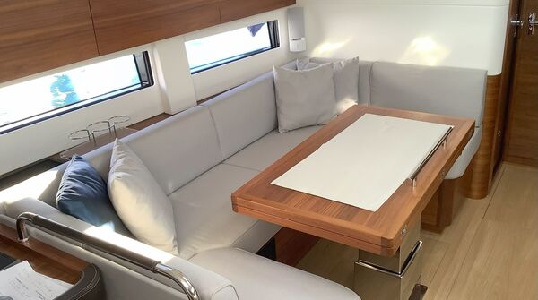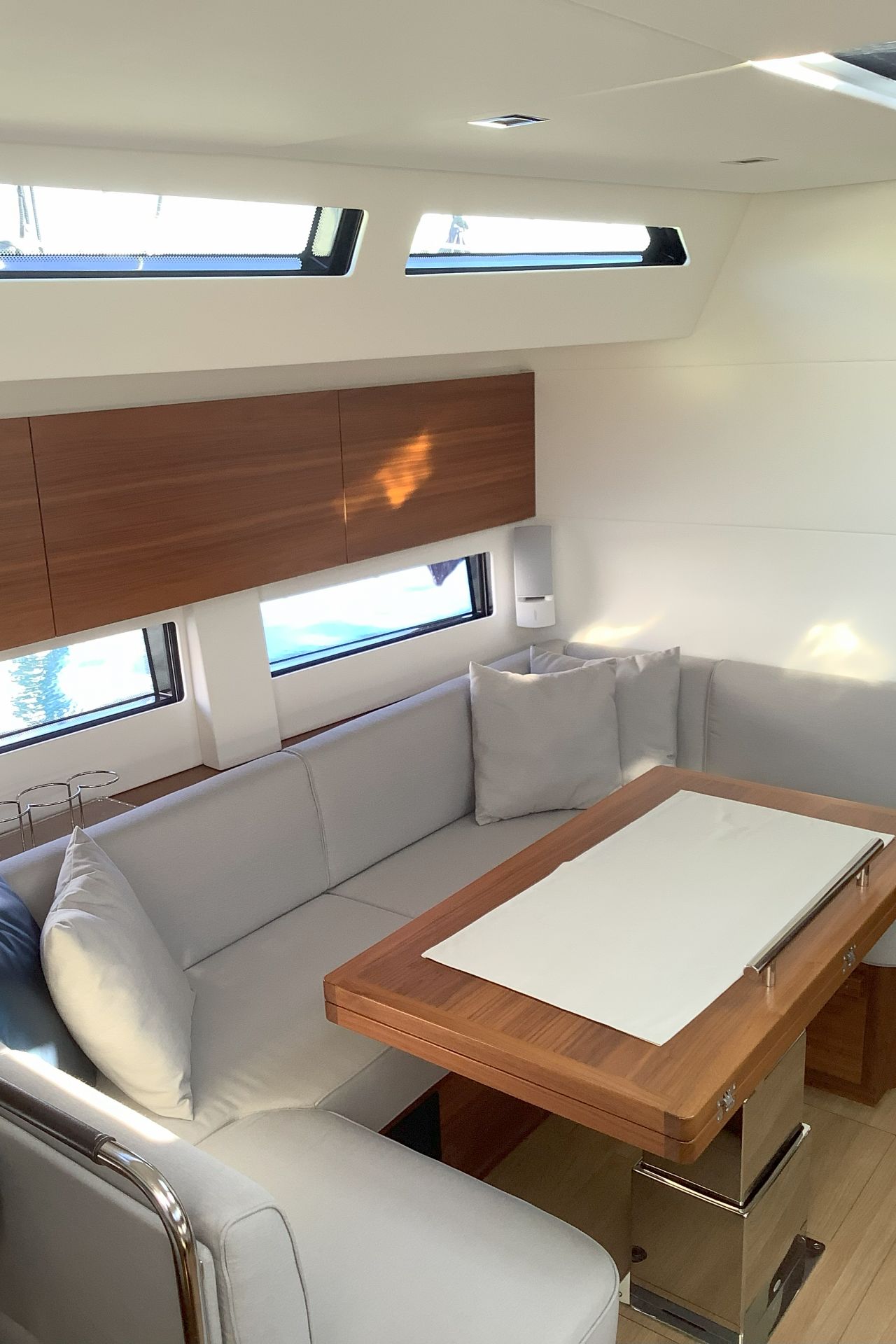 - Großzügiger, geräumiger Salon mit U-förmiger Sitzgruppe an Backbord
