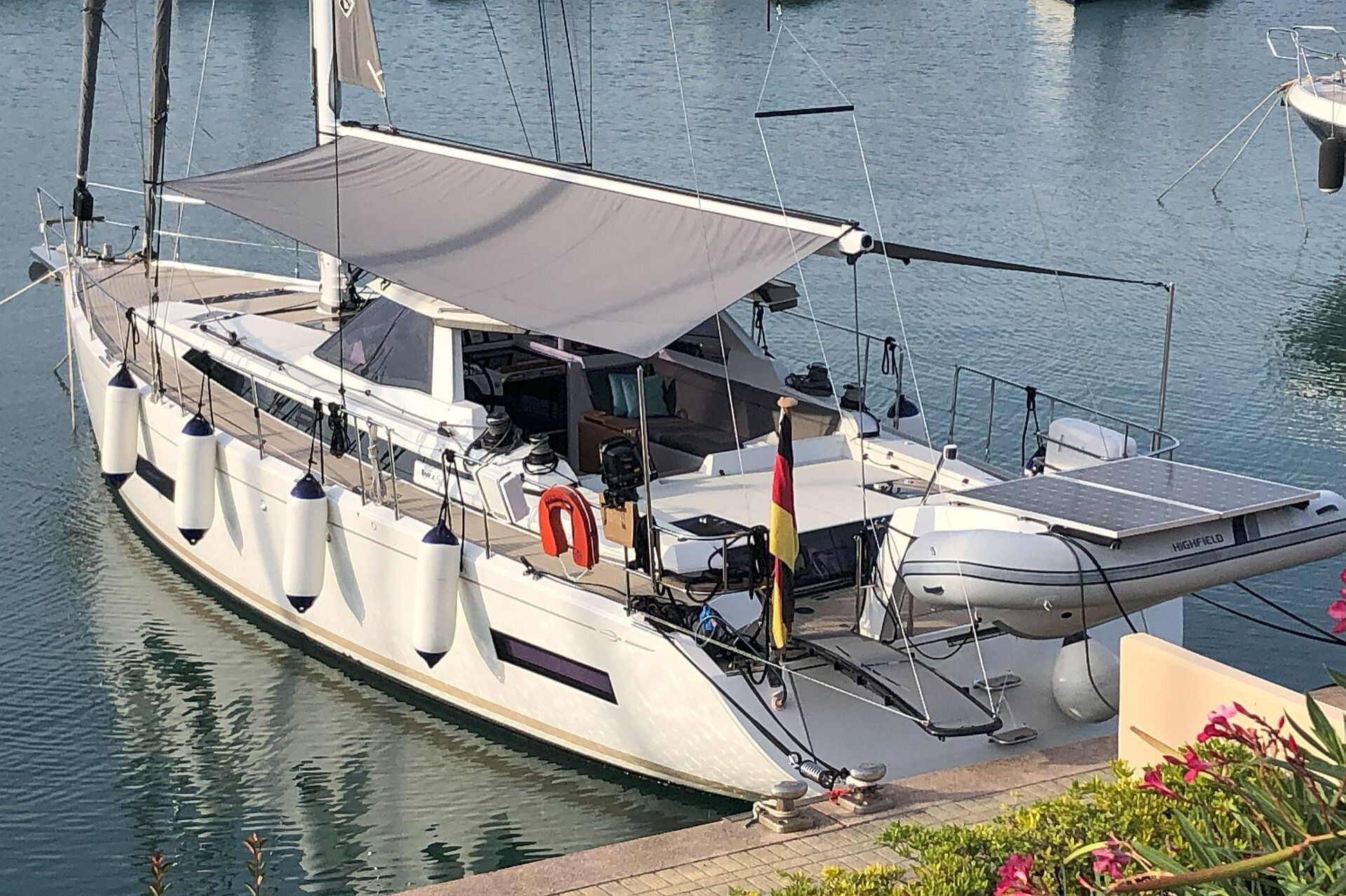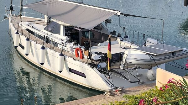 Hervorragend zur weltweiten Fahrt ausgestattete Eigneryacht. Umfangreiche Spezifikation inkl. Dieselgenerator 8 KW, Watermaker, Klimaanlage, Waschmaschine, elektrischen Winschen, elektrische Davits inkl. Dinghy und GORI Faltpropeller usw. Dank elektrischer Genuarollanlage, Selbstwendefock und elektrischem Rollgroß inkl. elektrischem Unterliekstrecker ist diese AMEL 50 einhandtauglich. Moderner, exklusiver Ausbau in seidenmatt lackiertem amerikanischem Nussbaum mit weiß bespannten Paneelen, hellen laminierten Bodenbrettern und zahlreichen Lederapplikationen. Die AMEL 50 befindet sich in einem sehr guten Pflegezustand, liegt segelfertig in Südfrankreich und kann jederzeit nach Absprache besichtigt werden.