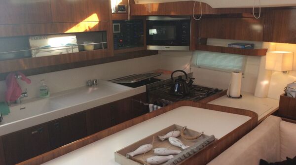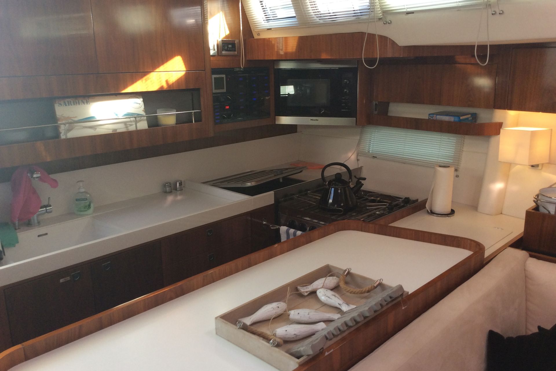 Bei dieser AMEL 55 handelt es sich um ein gepflegtes, wenig gesegeltes Eignerschiff aus erster Hand. 3 Kabinen-Version mit Eignerkabine im Vorschiff, zwei Gästekabinen im Heck und zwei Nasszellen. Tiefes, gut geschütztes Cockpit mit fester Windschutzscheibe und Doghouse. Alle Schoten, Strecker und Trimmeinrichtungen lassen sich vom Cockpit aus bedienen. Ausbau in amerikanischem Nussbaum mit Bodenbrettern in Eichen-Laminat. Vollständige Spezifikation inkl. Dieselgenerator, elektrischem Rollmast, hydraulischer Gangway, elektrischen Davits, umfangreicher Segelgarderobe usw. Die Yacht ist segelfertig ausgerüstet und wird mit Pütt un Pann und allem Inventar verkauft.