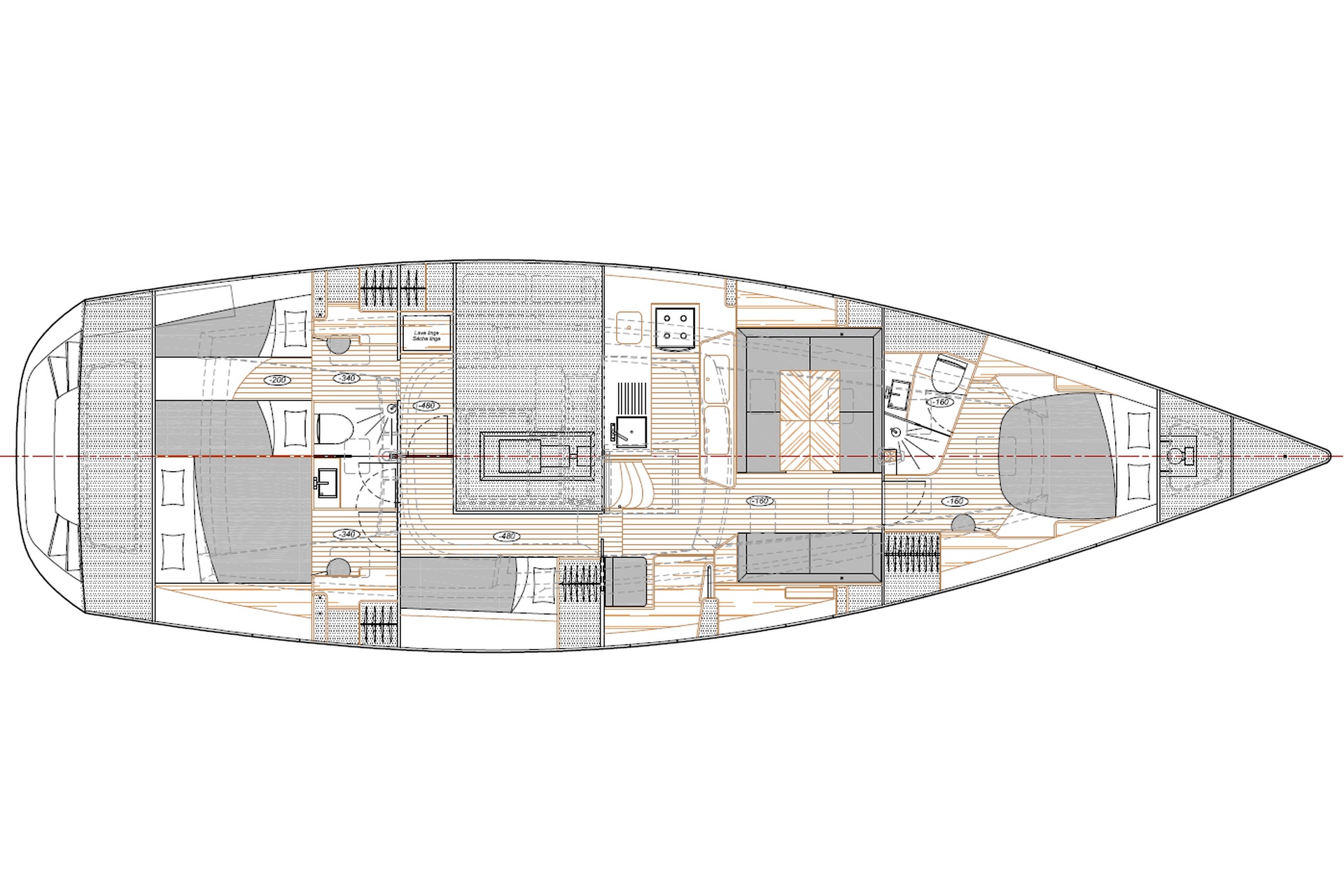 - 3 Kabinen-Layout mit Eignerkabine im Vorschiff.