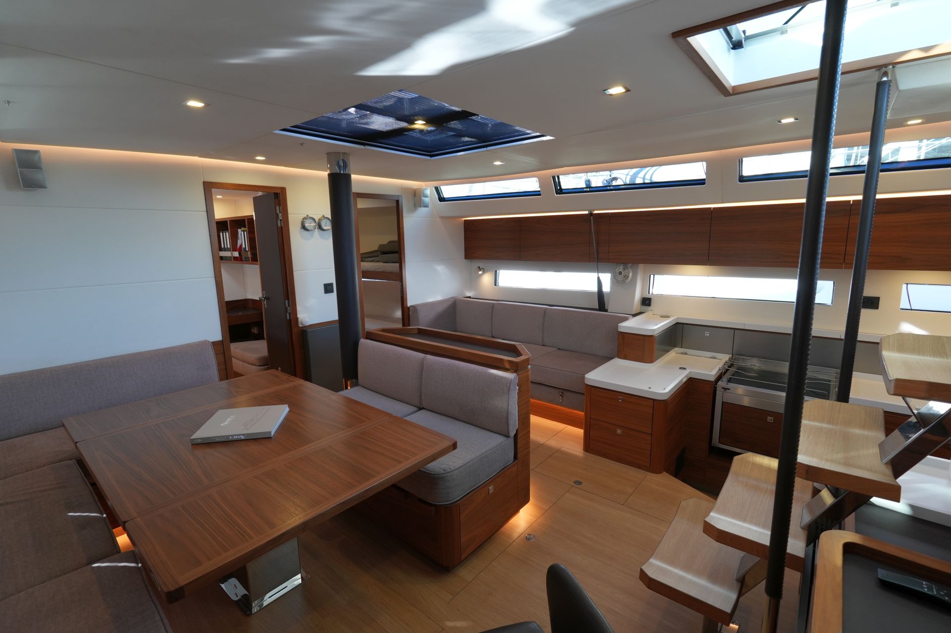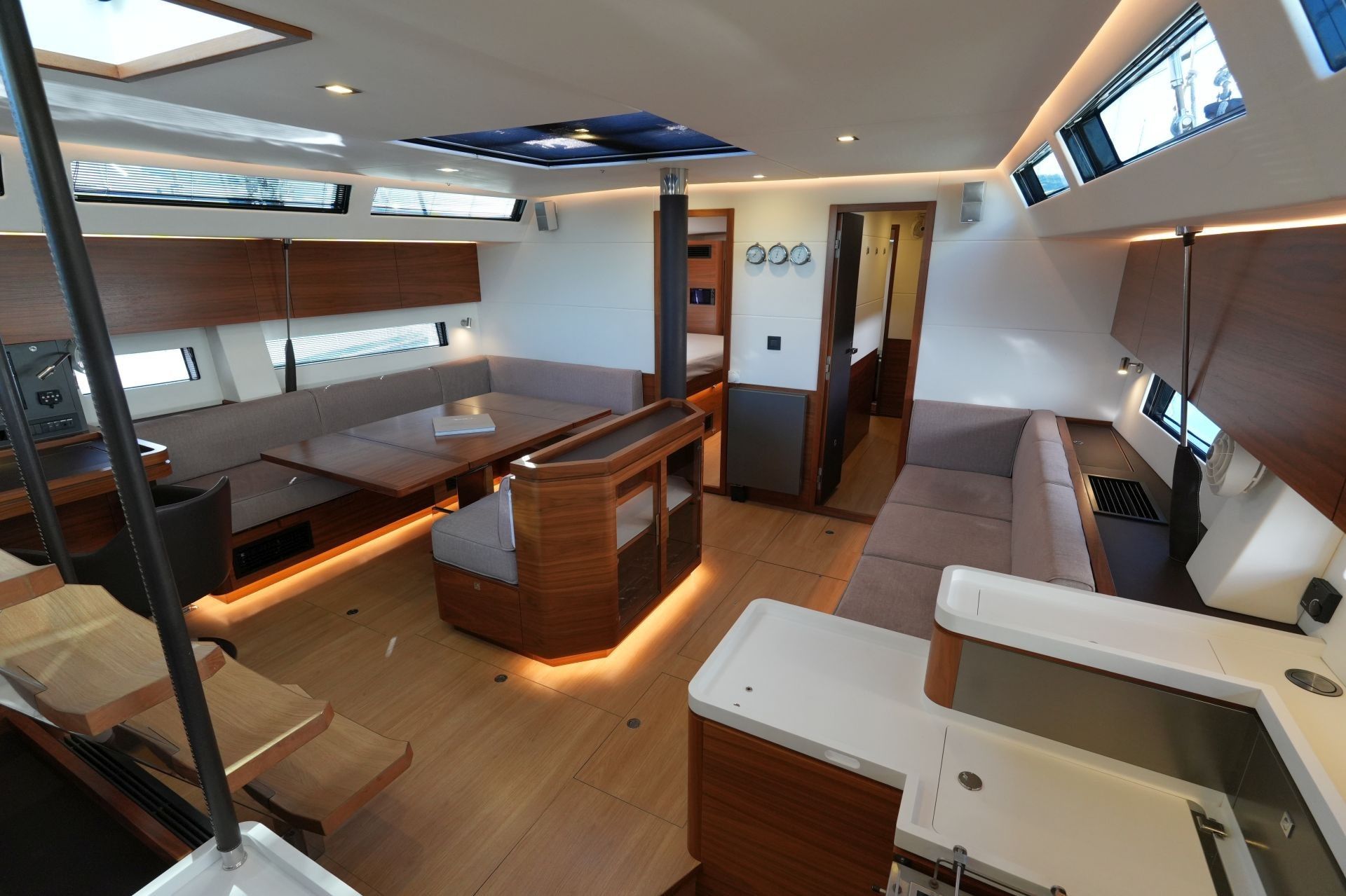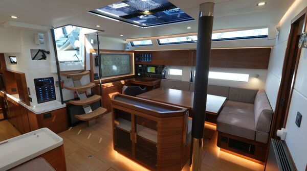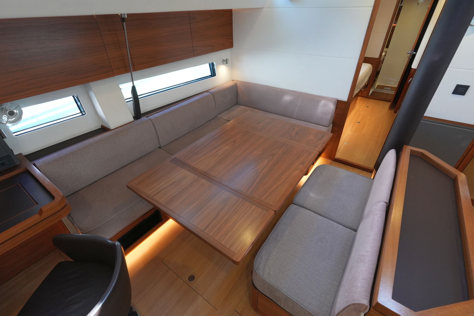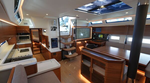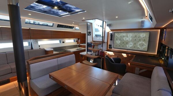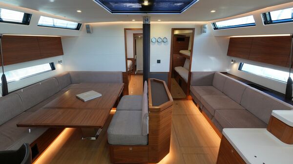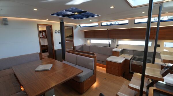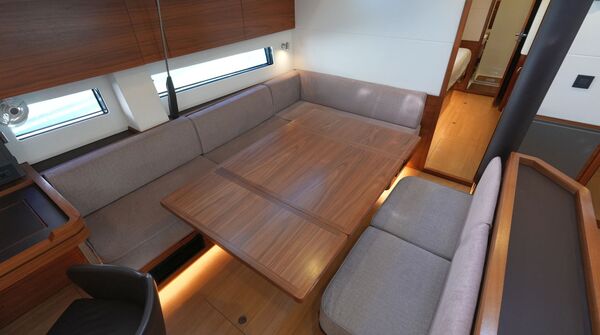 - Großzügiger, geräumiger Salon mit L-förmiger Dinette an Backbord