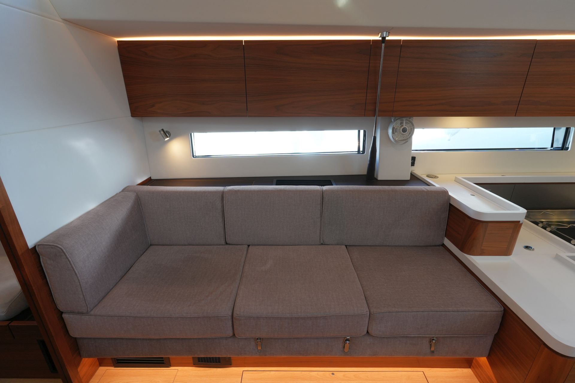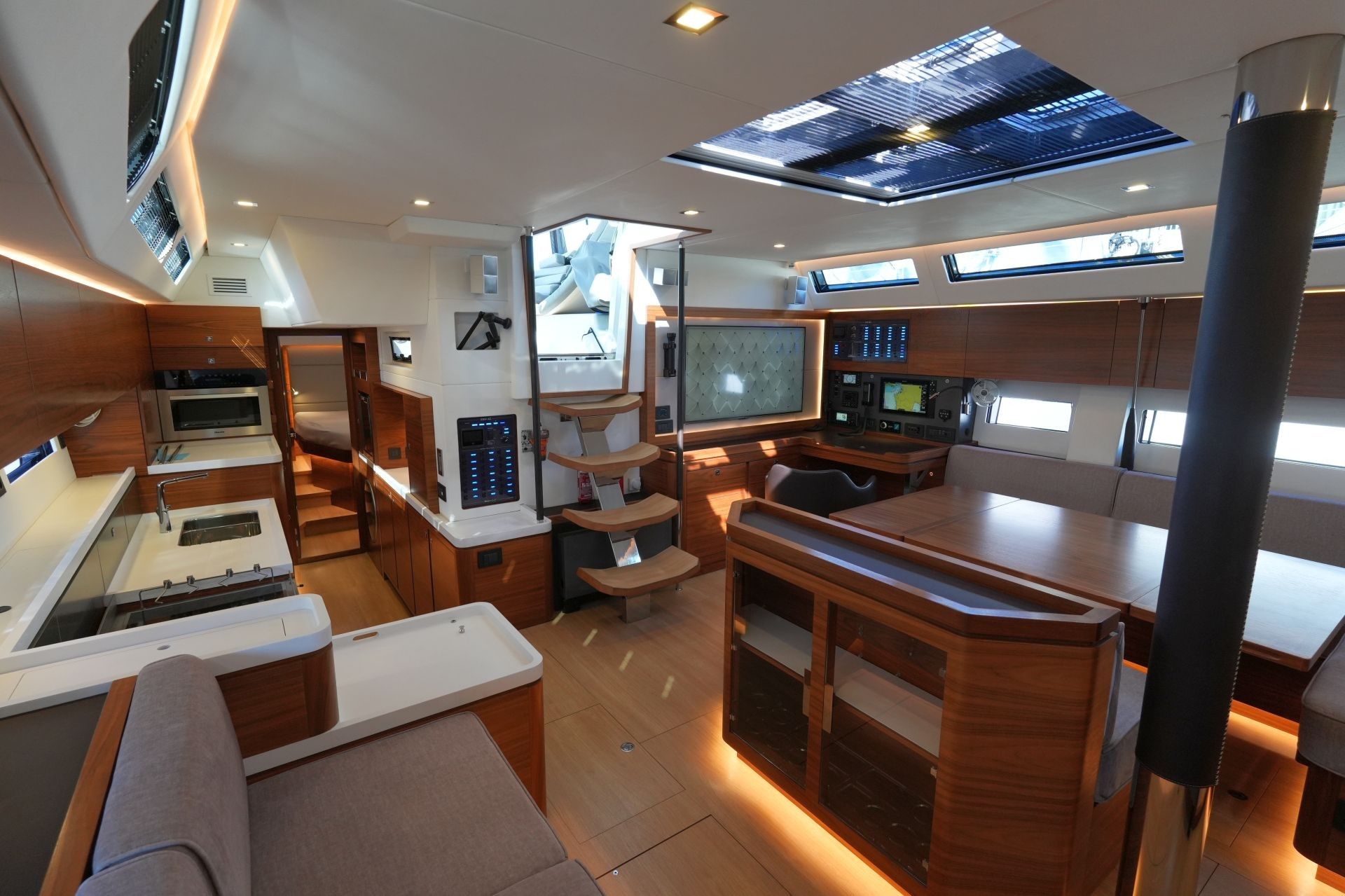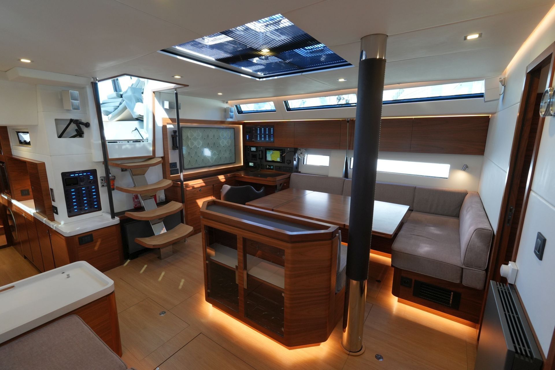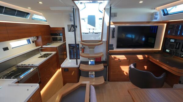 - Großzügiger, geräumiger Salon mit L-förmiger Dinette an Backbord