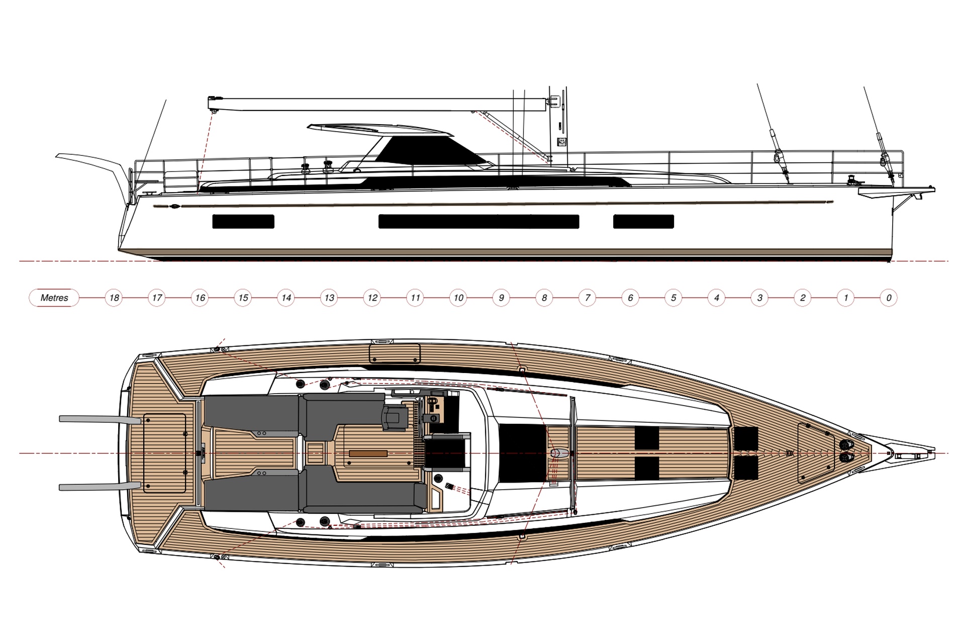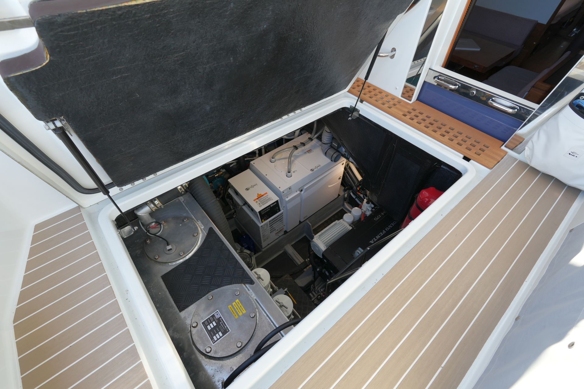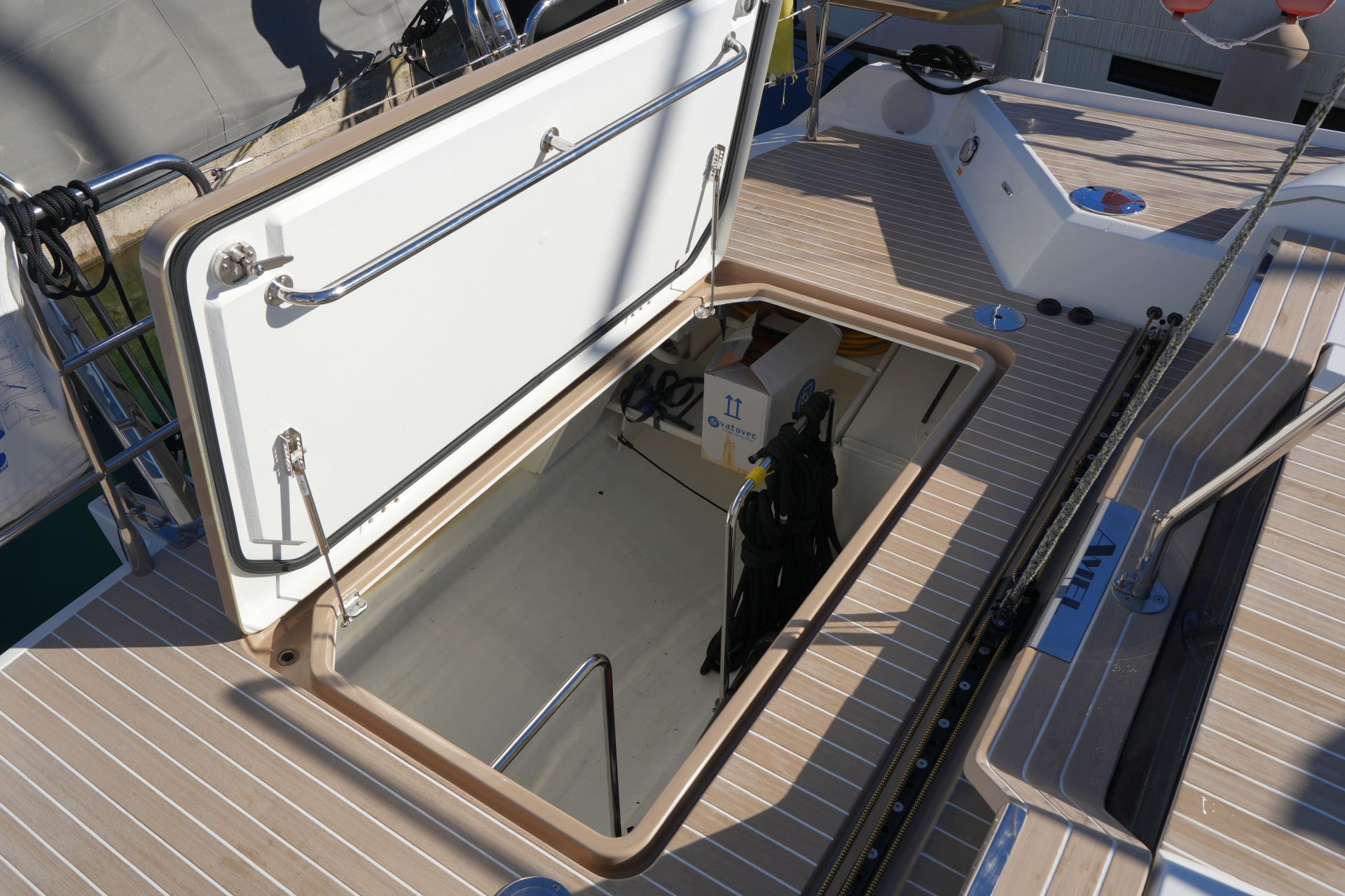 - Geräumige (gegenüber dem Standard vergrößerte) Lazarette unter dem Achterdeck
