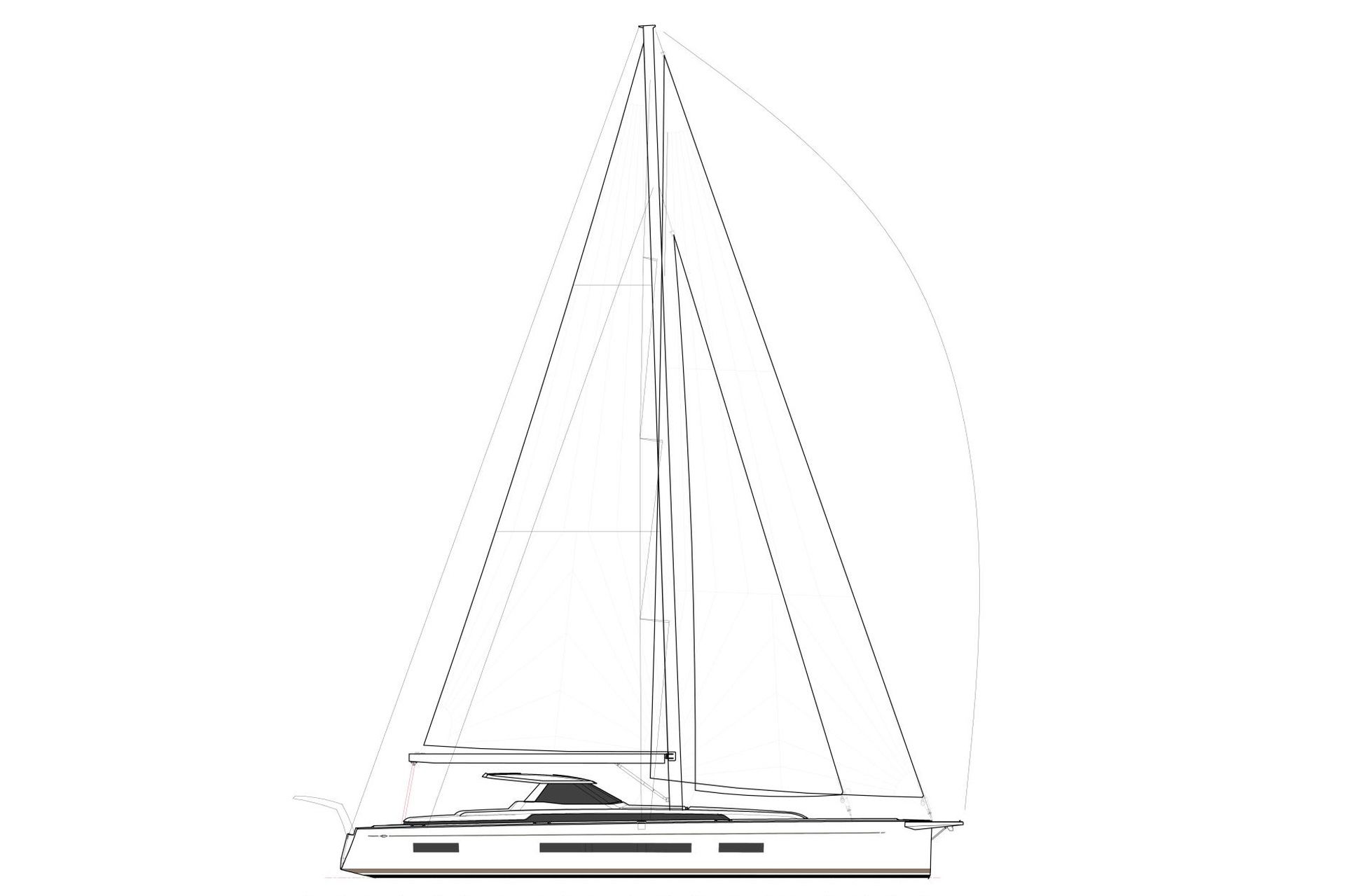 - Schiene mit Traveller für Selbstwendefock vor dem Mast