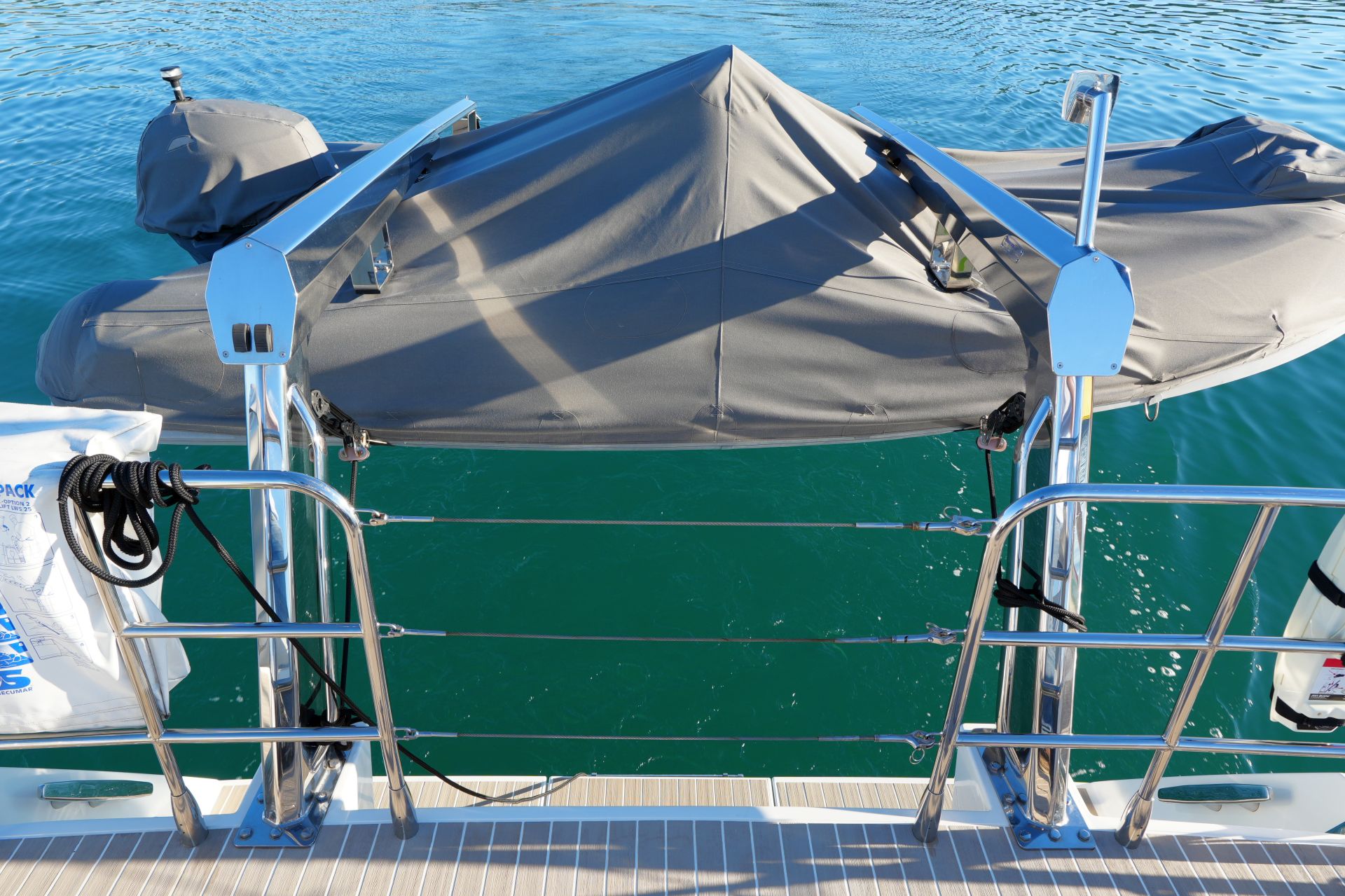 - Durchgehende feste Seereling aus Edelstahl Rohr mit Relingstoren an Steuerbord und Backbord