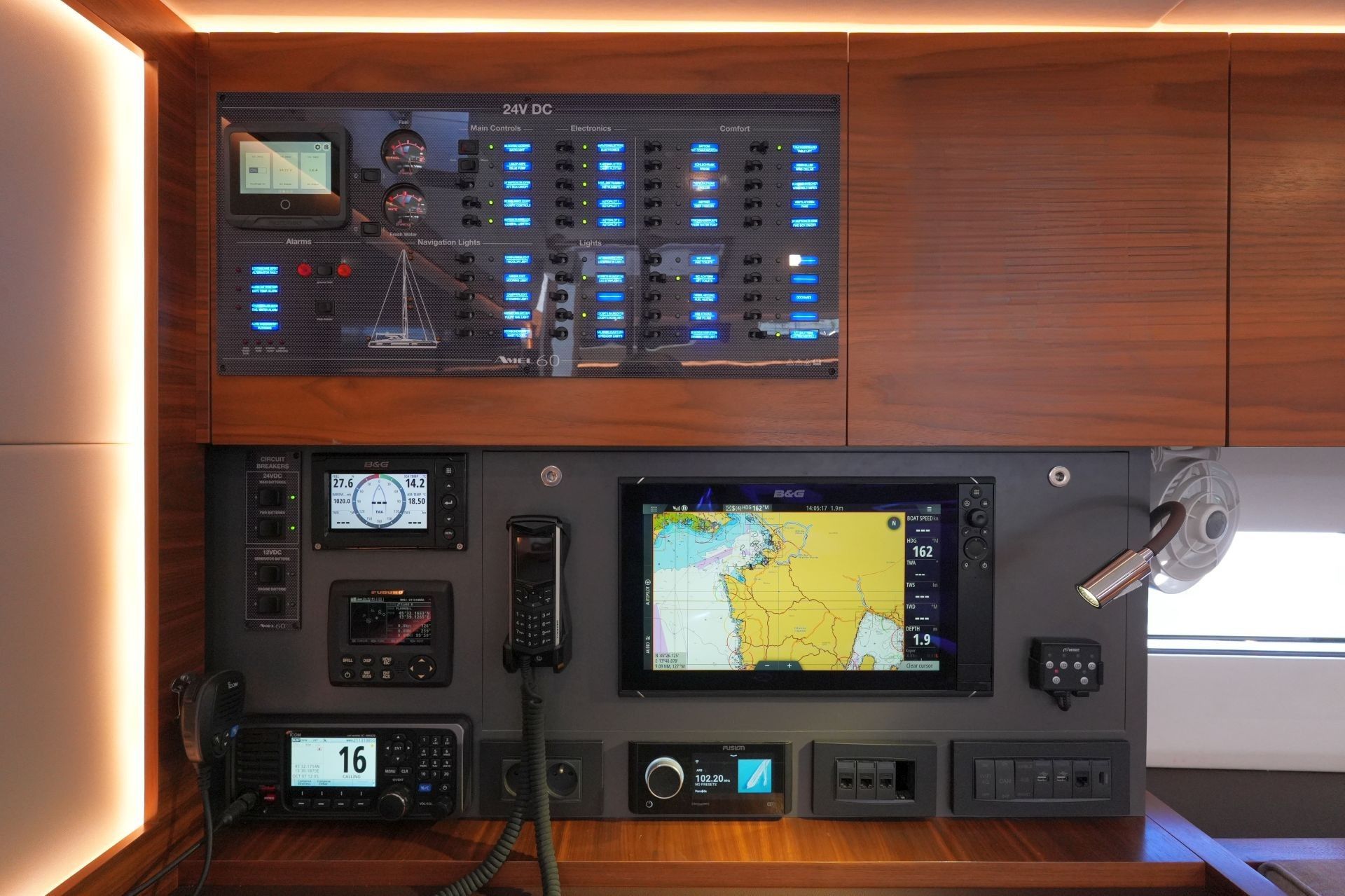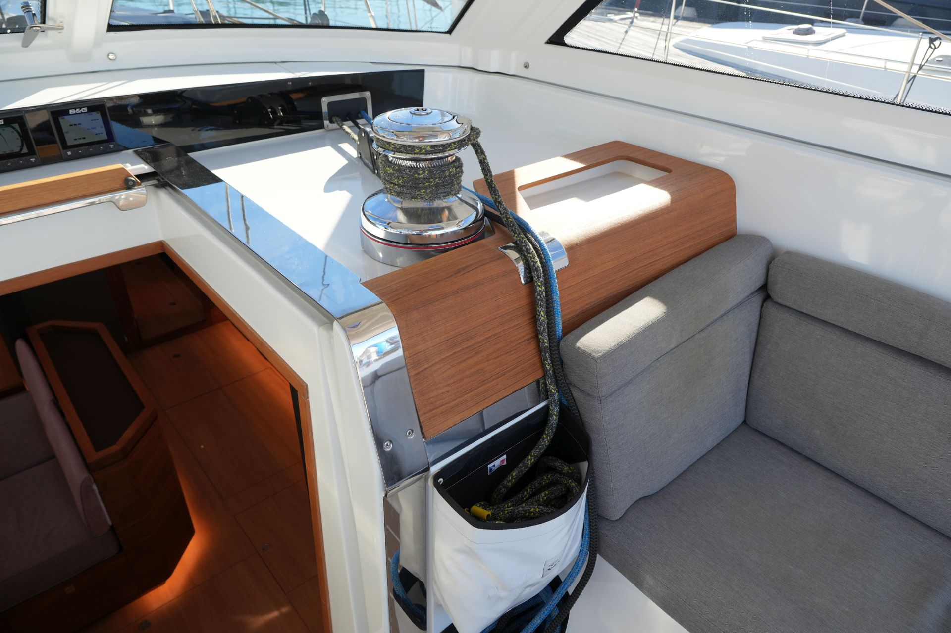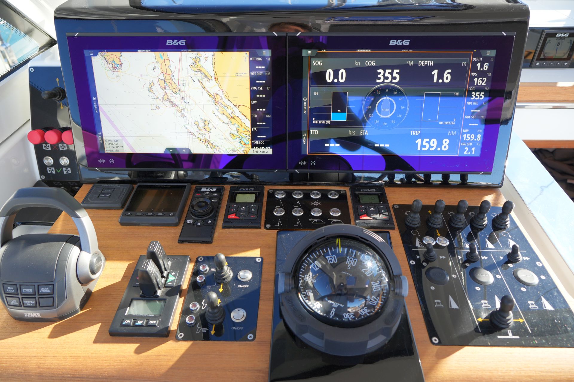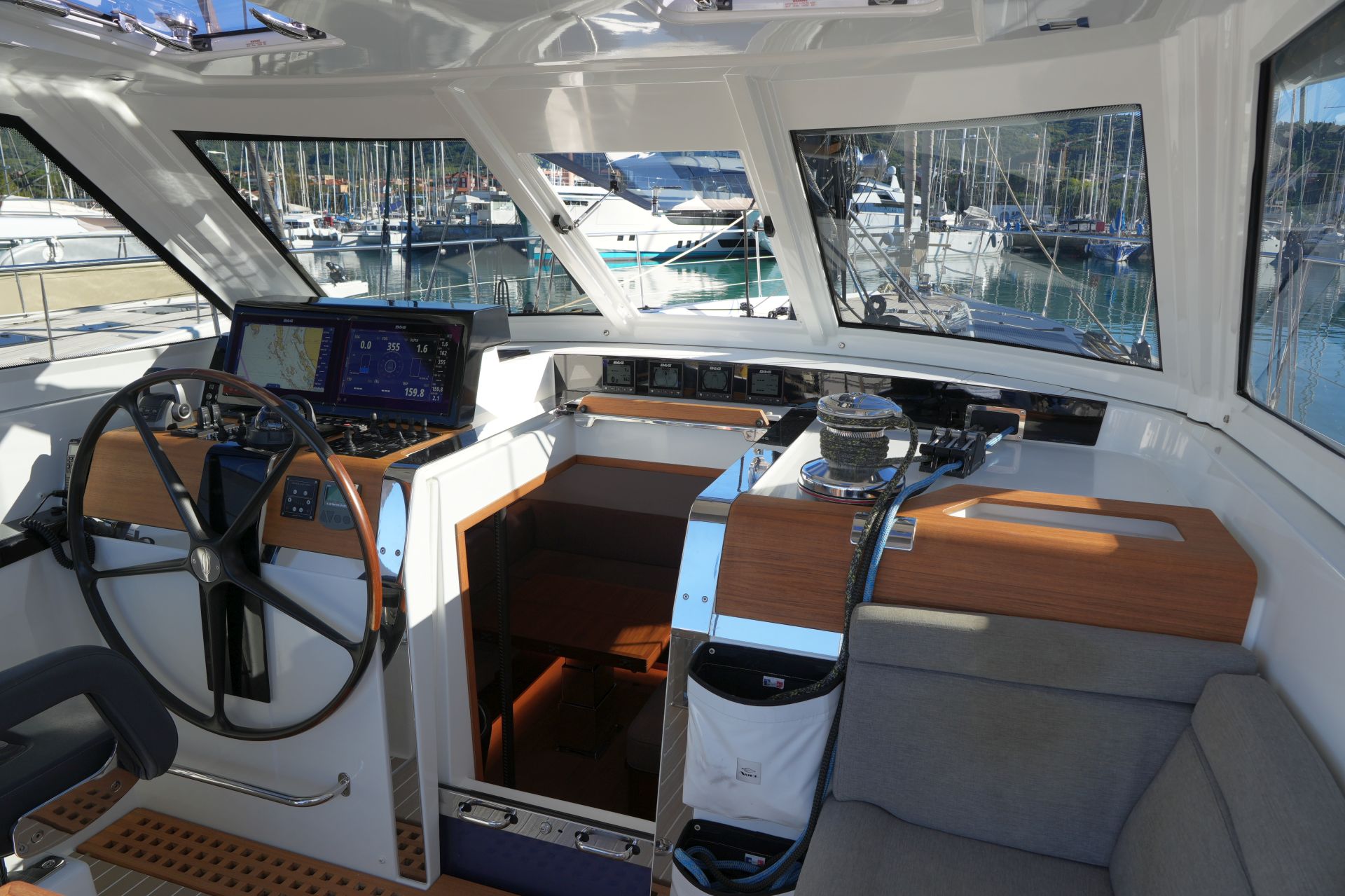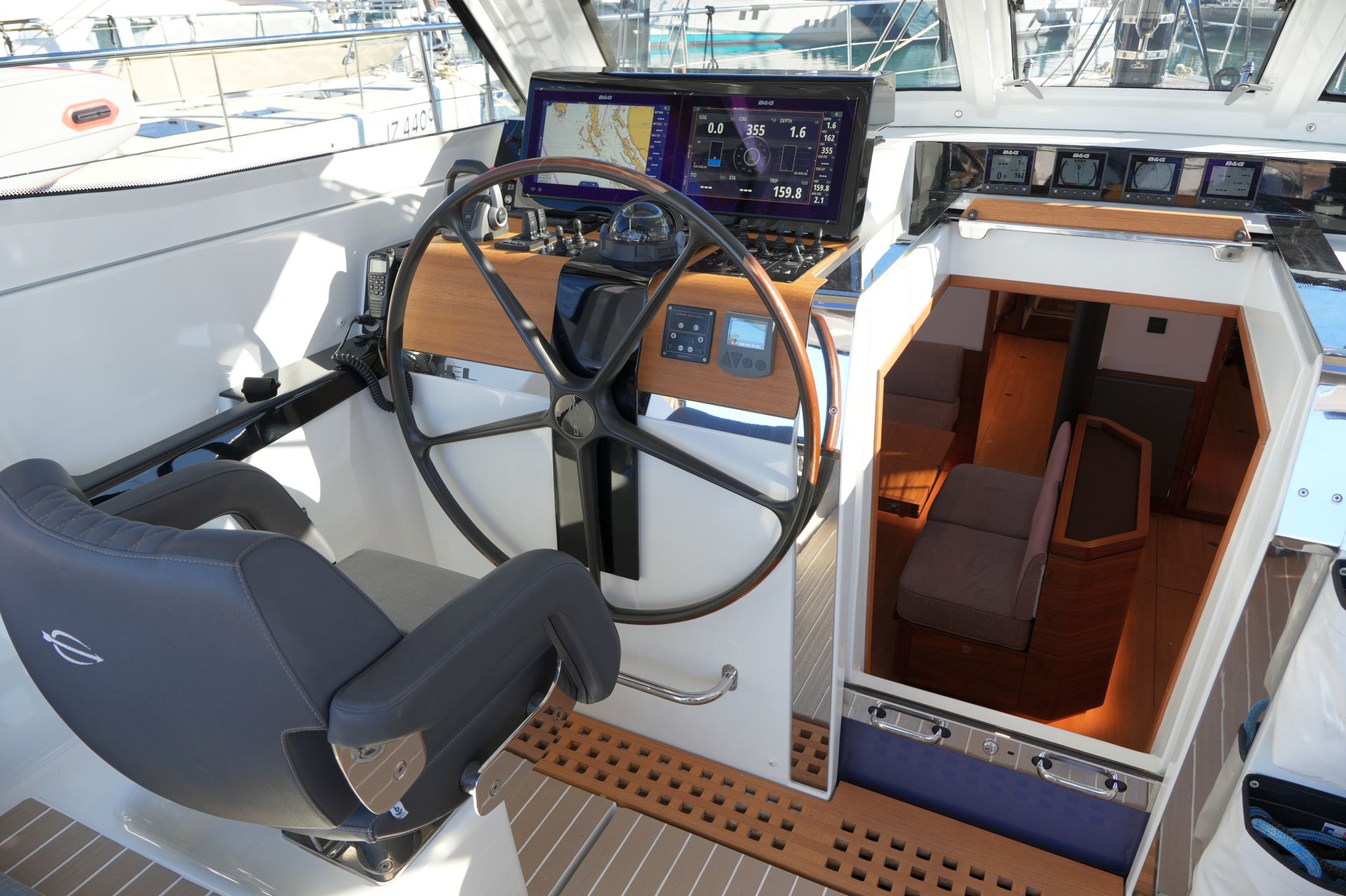 - 4 x B&G Triton² Instrumenten-Display im Cockpit über dem Niedergang