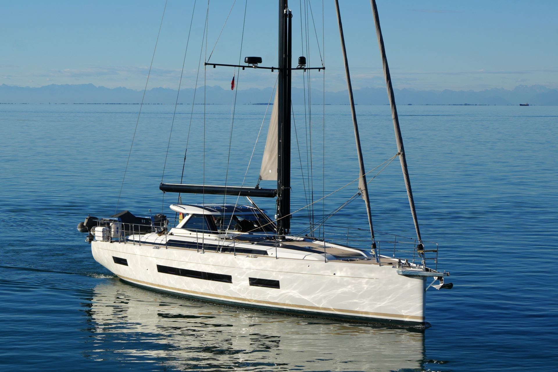 Bei dieser AMEL 60 handelt es sich um eine in vielerlei Hinsicht besondere Yacht. Das erfahrene und technisch versierte Eigner-Ehepaar hat das Schiff durch zahlreiche sinnvolle Modifikationen, ein individuelles Interieur-Layout sowie einen ab Werft geänderten Heckspiegel perfekt für Weltumsegelung ausgerüstet. Die reichhaltige Standardspezifikation der AMEL 60 beinhaltet schon einen elektrischen Kohlefaser Rollmast, ausfahrbares Bugstrahlruder, Lithium-Batteriebank und vieles mehr. Darüber hinaus ist diese Yacht mit allen Optionen ausgerüstet, die weite Touren und ausgedehnte Aufenthalte an Bord komfortabel machen: Größerer Dieselgenerator 19 kVA, Klimaanlage, Dieselheizung, Watermaker 240 l/h, Heckstrahlruder, elektrische Winschen, Kutterstag für Selbstwendefock usw. sind an Bord. Exklusive Segel-Garderobe von NORTH-Sails und umfangreiche B&G Navigation sowie Kommunikation inkl. SSB und Satelliten-Telefon. Für das Eigner-Ehepaar ist dies schon die zweite individuell gebaute AMEL. Insofern ist es ihm gelungen, daß die Werft zahlreiche gute Details durch bessere ersetzt hat. Moderner, exklusiver und freundlicher Ausbau in Amerikanischer Walnuß. Die AMEL 60 liegt in Slowenien an der Adriaküste und kann jederzeit nach Absprache besichtigt werden. Das Titelbild ist ein Prospektfoto, alle weiteren sind aktuelle Originalbilder.