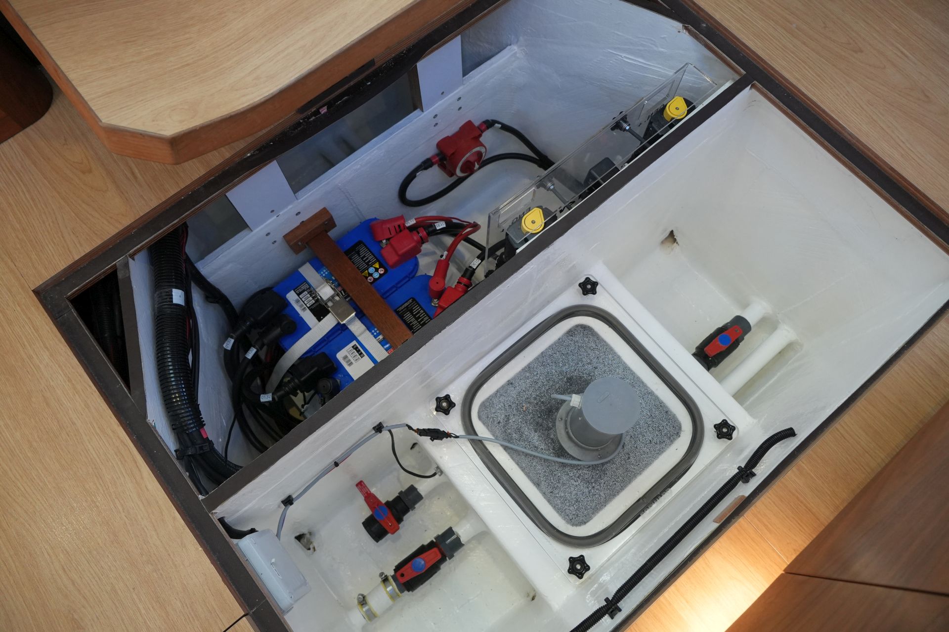 - Große Segellast im Vorschiff mit Stauraum für Fender, Festmacher und Segel sowie elektrischer Zwangsbelüftung