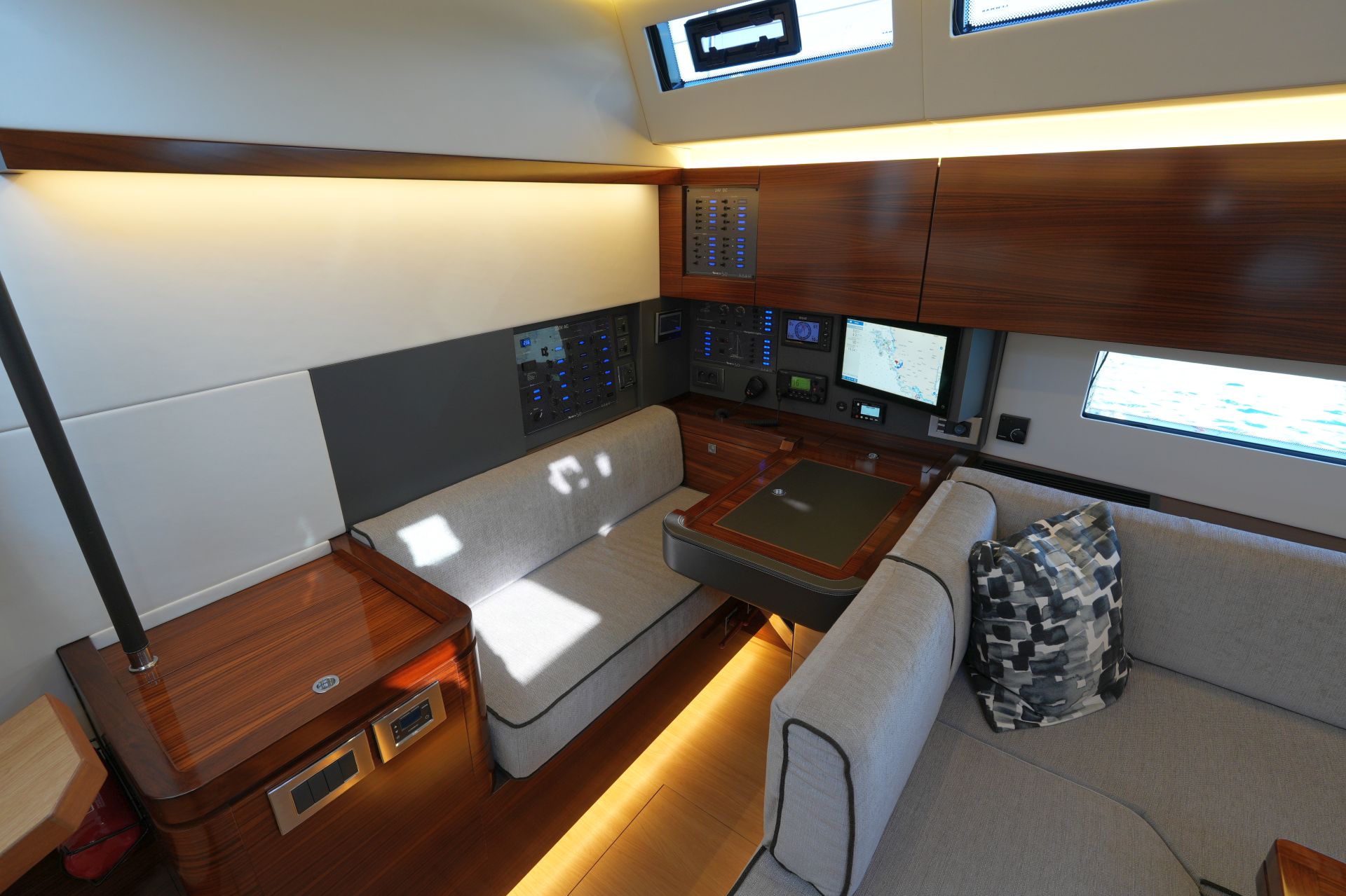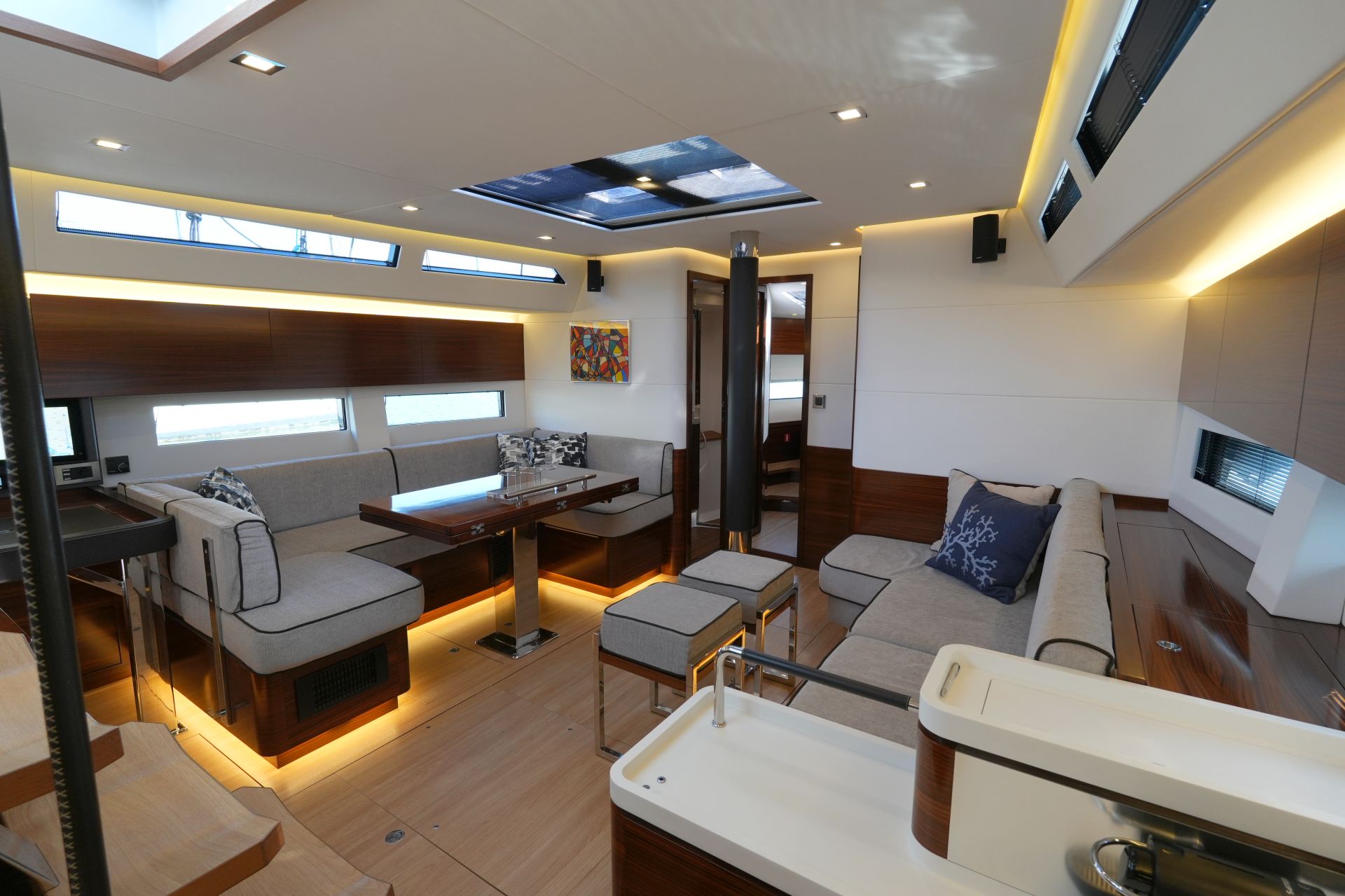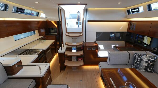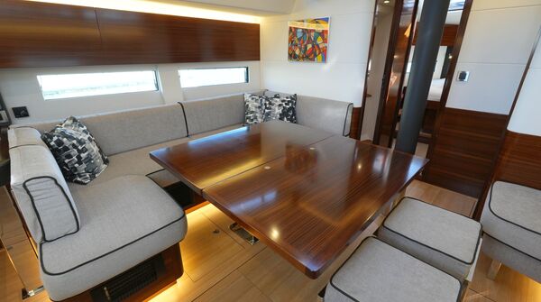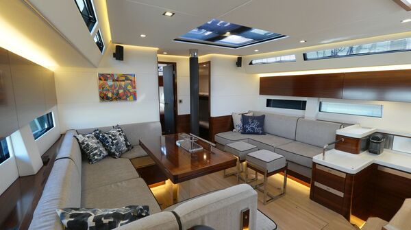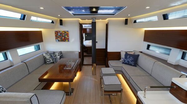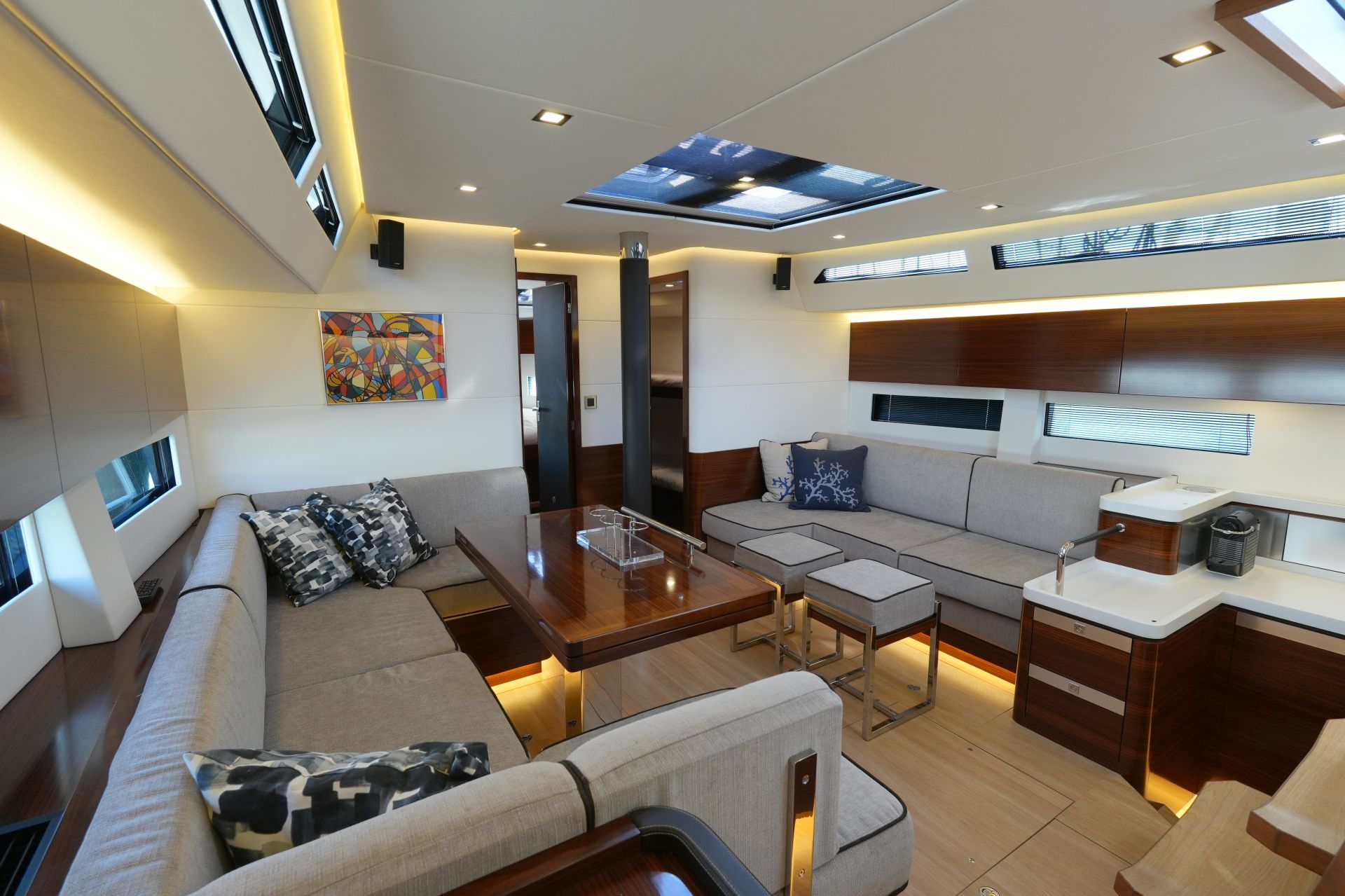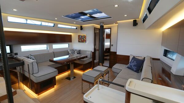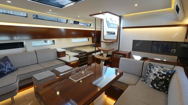 - Großzügiger, geräumiger Salon mit U-förmiger Sitzgruppe an Backbord