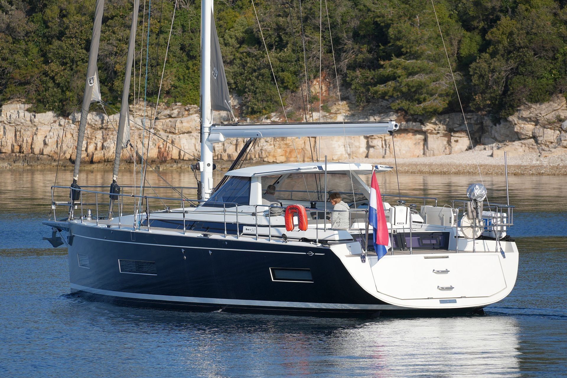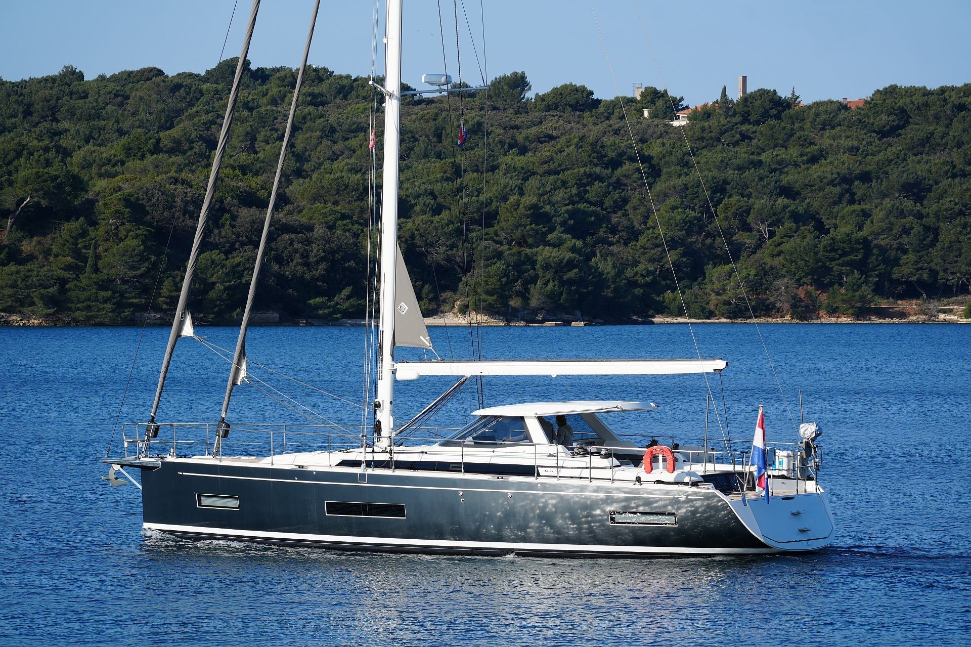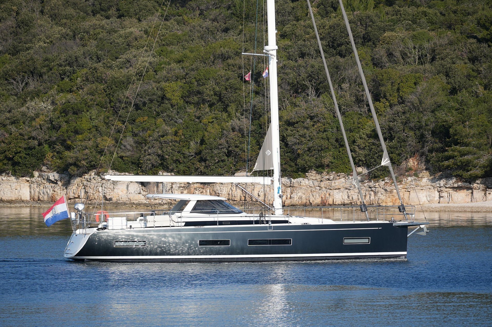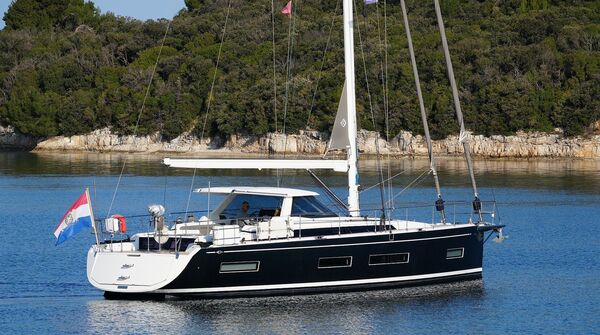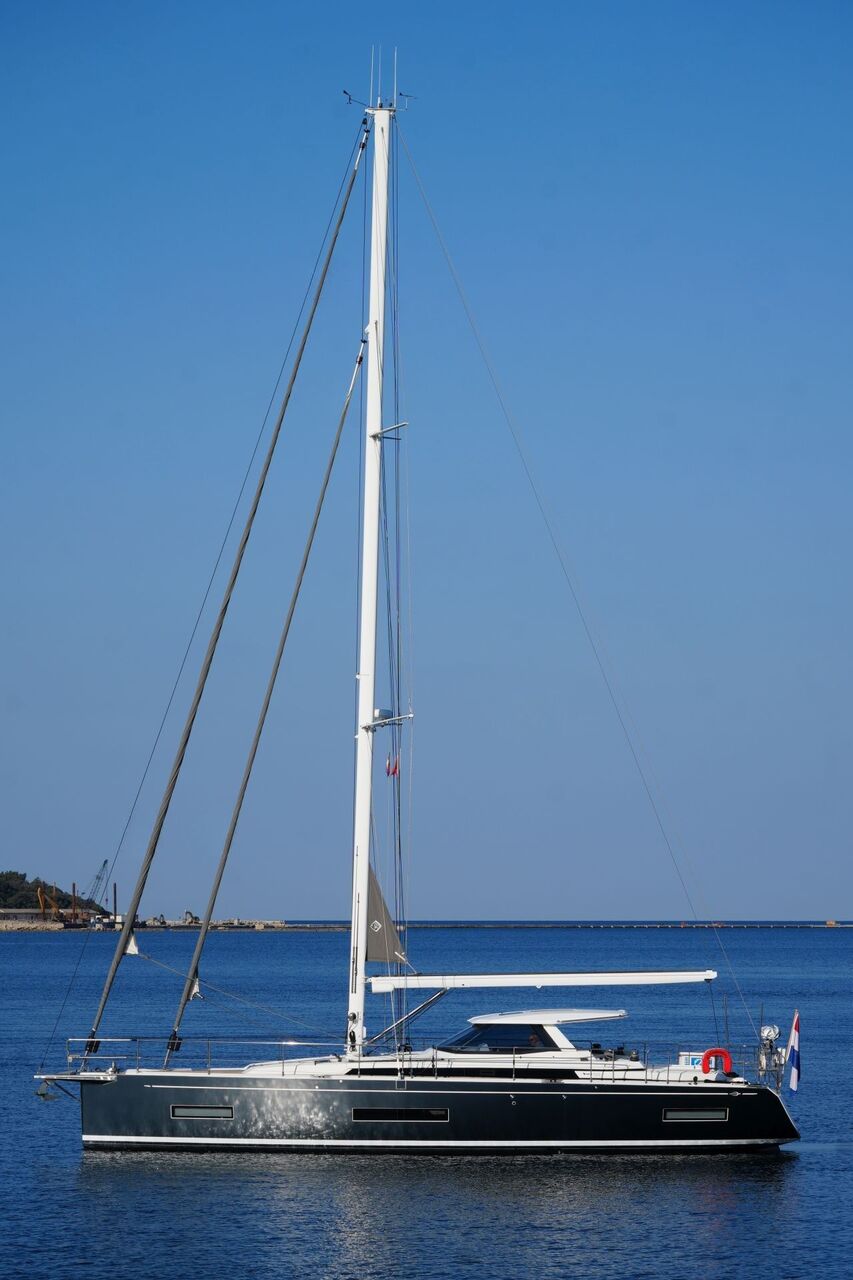 Junge, gepflegte Eigneryacht aus erster Hand. Umfangreiche Spezifikation inkl. Bugstrahlruder, Dieselgenerator 8 KW, Watermaker 100 l/h, Klimaanlage und Dieselheizung, Waschtrockner, drei elektrischen Winschen usw. Der Rumpf ist in Anthrazit Metallic foliert. Dank elektrischer Genuarollanlage, Selbstwendefock mit elektrischer Rollanlage und elektrischem Rollgroß inkl. elektrischem Unterliekstrecker ist diese AMEL 50 im Segelbetrieb absolut einhandtauglich. Komplette Navigationselektronik mit zwei Kartenplottern, Radar, Autopilot, AIS-Transponder und UKW-Sprechfunk. Moderner, exklusiver und liebevoll ausgeführter Ausbau in Indischem Palisander mit weiß bespannten Paneelen, hellen laminierten Bodenbrettern und zahlreichen Lederapplikationen. Die AMEL 50 liegt segelfertig in Kroatien an der oberen Adria und kann nach Absprache besichtigt werden.