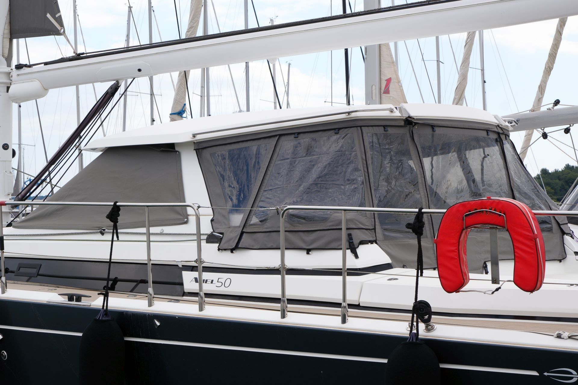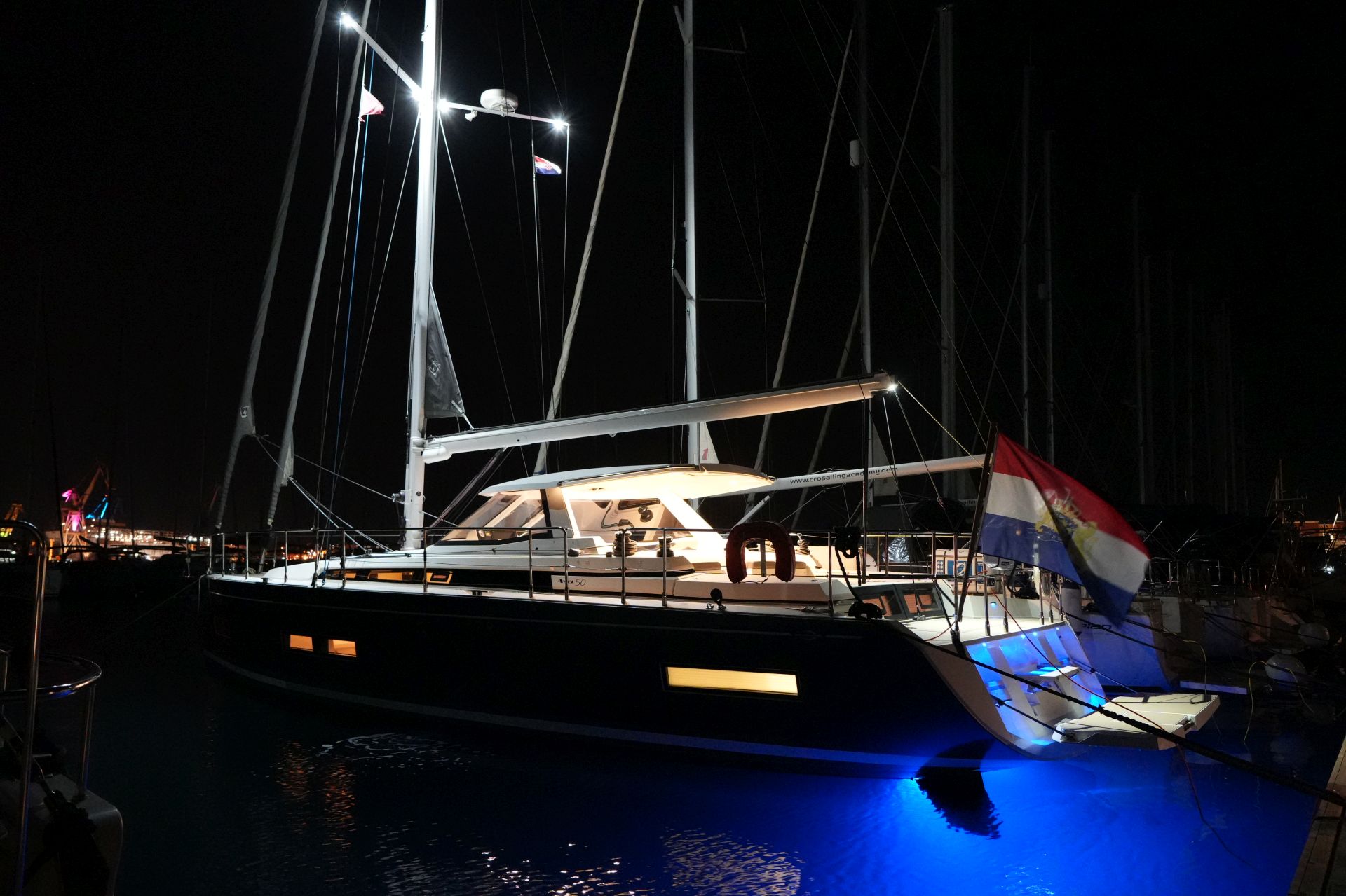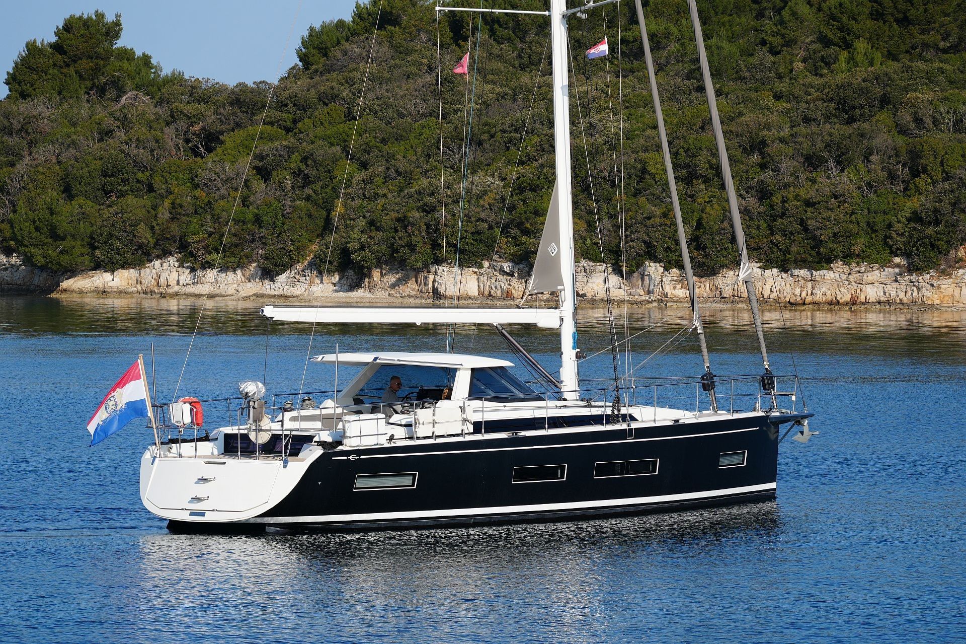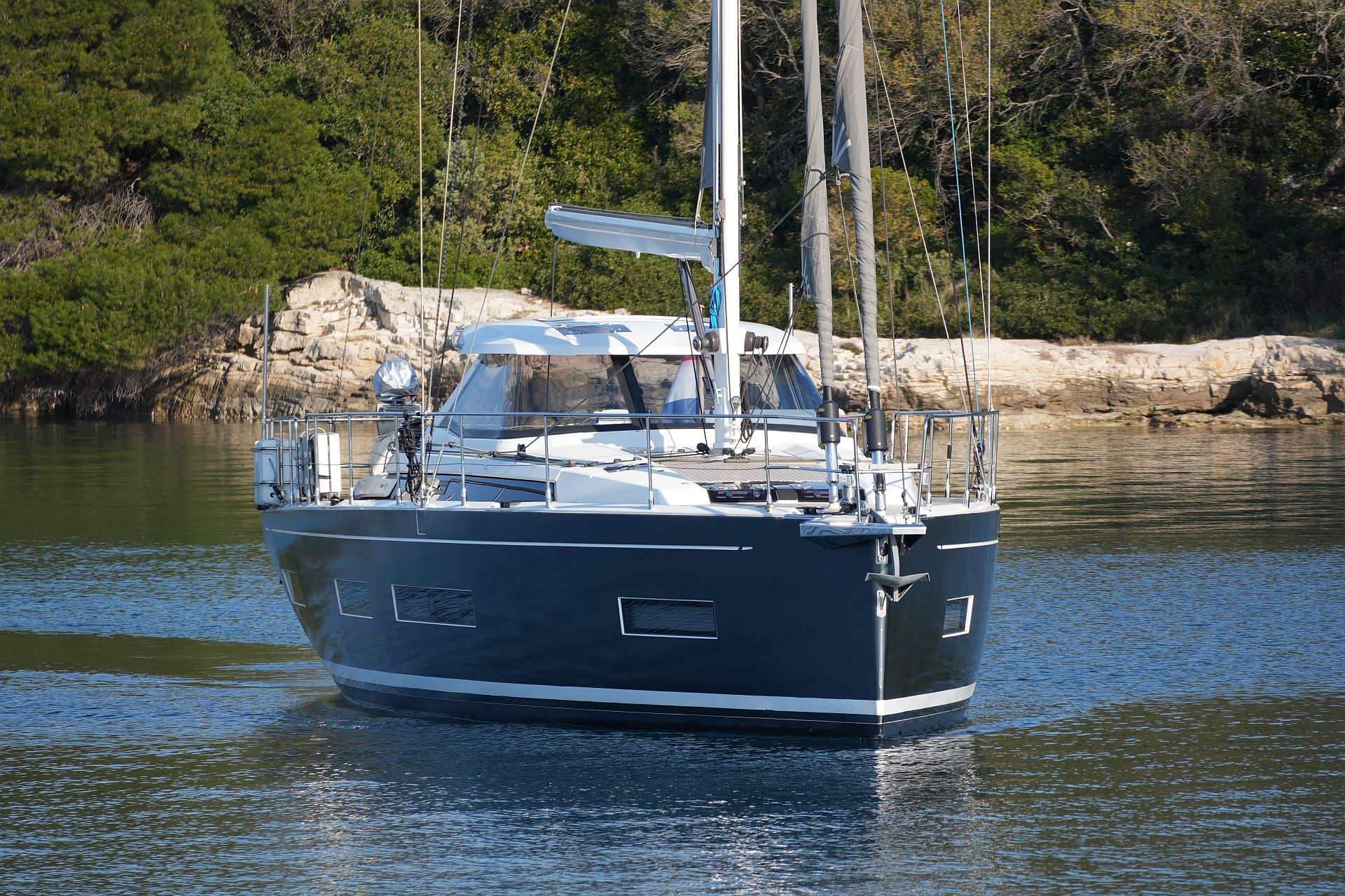 Junge, gepflegte Eigneryacht aus erster Hand. Umfangreiche Spezifikation inkl. Bugstrahlruder, Dieselgenerator 8 KW, Watermaker 100 l/h, Klimaanlage und Dieselheizung, Waschtrockner, drei elektrischen Winschen usw. Der Rumpf ist in Anthrazit Metallic foliert. Dank elektrischer Genuarollanlage, Selbstwendefock mit elektrischer Rollanlage und elektrischem Rollgroß inkl. elektrischem Unterliekstrecker ist diese AMEL 50 im Segelbetrieb absolut einhandtauglich. Komplette Navigationselektronik mit zwei Kartenplottern, Radar, Autopilot, AIS-Transponder und UKW-Sprechfunk. Moderner, exklusiver und liebevoll ausgeführter Ausbau in Indischem Palisander mit weiß bespannten Paneelen, hellen laminierten Bodenbrettern und zahlreichen Lederapplikationen. Die AMEL 50 liegt segelfertig in Kroatien an der oberen Adria und kann nach Absprache besichtigt werden.