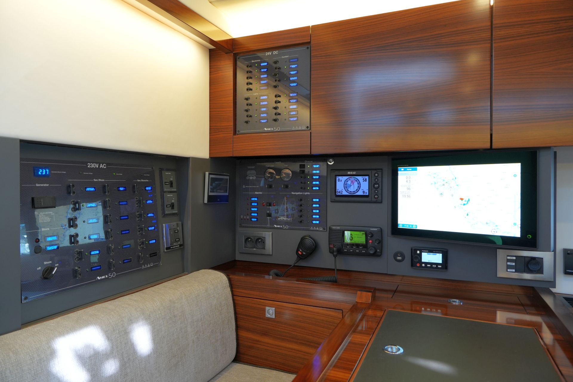 - 2 x B&G H5000 GFD-Display im Cockpit und 1 x H5000 GFD-Display am Kartentisch