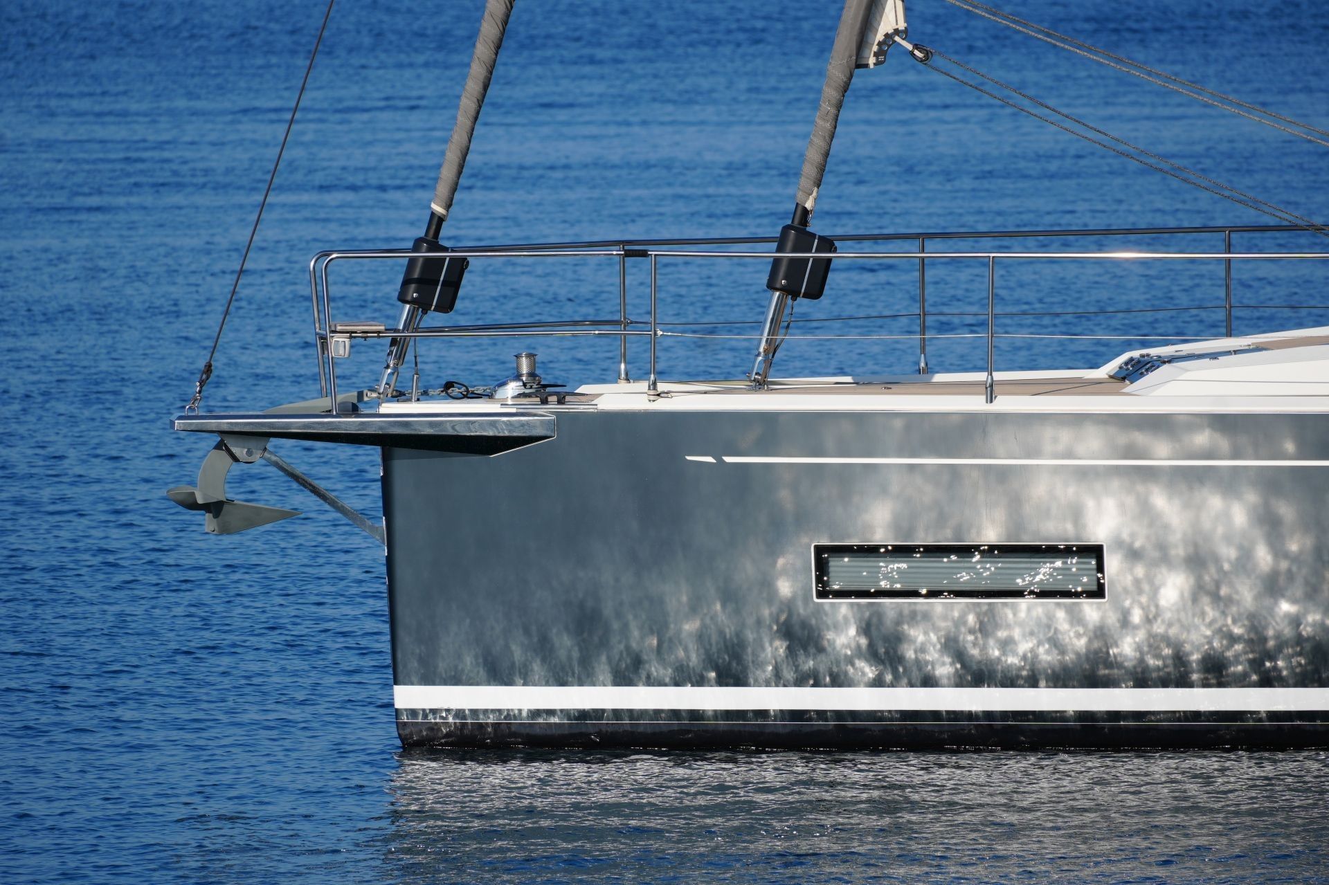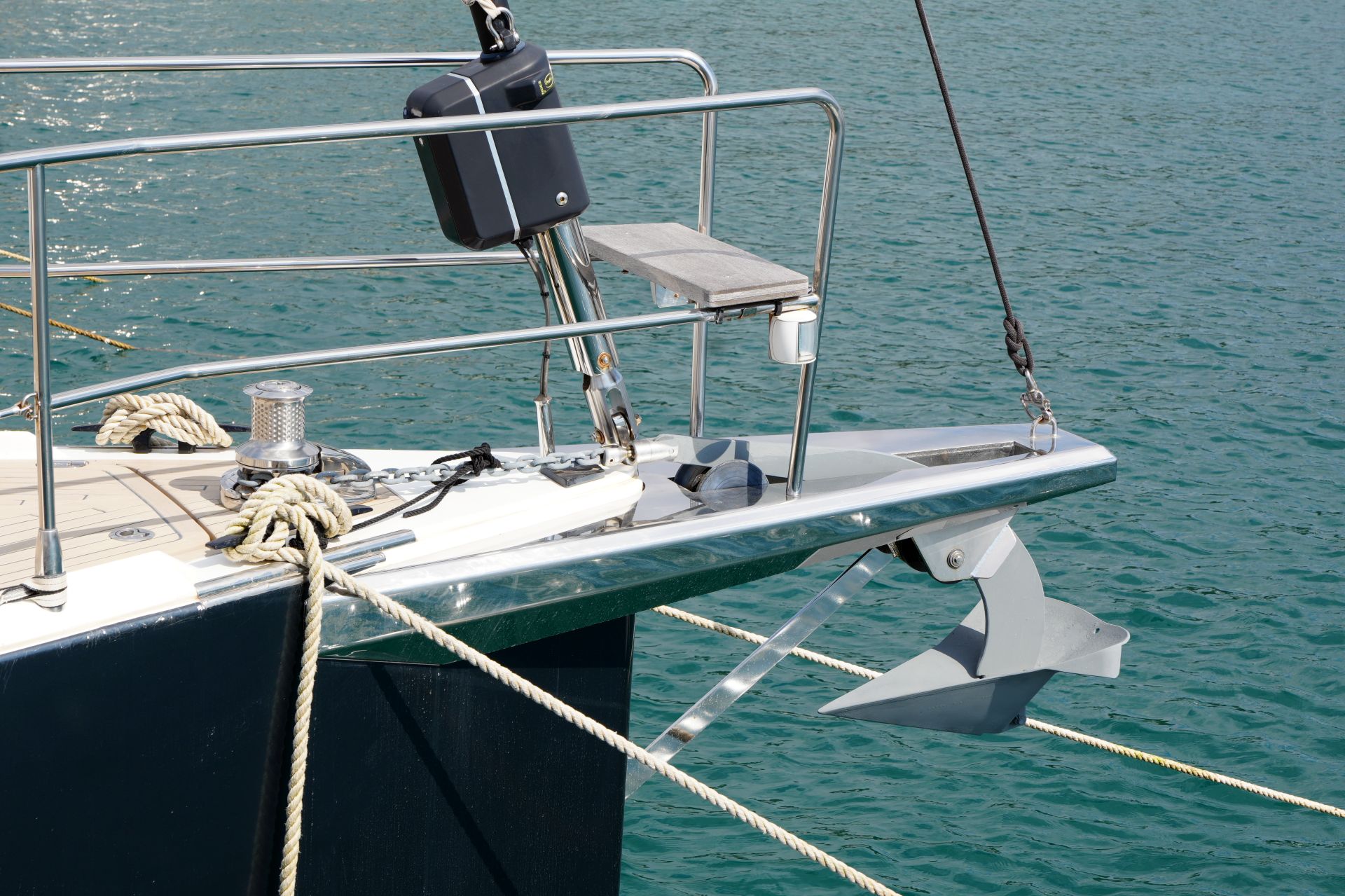 - Ankergeschirr: Spade-Anker 35 kg und 100 m Ankerkette 10 mm