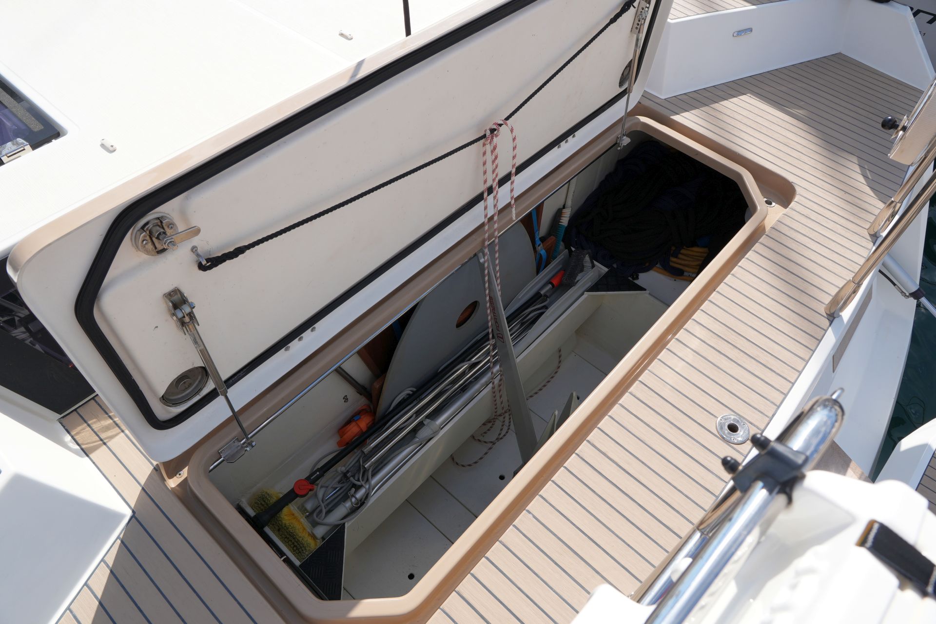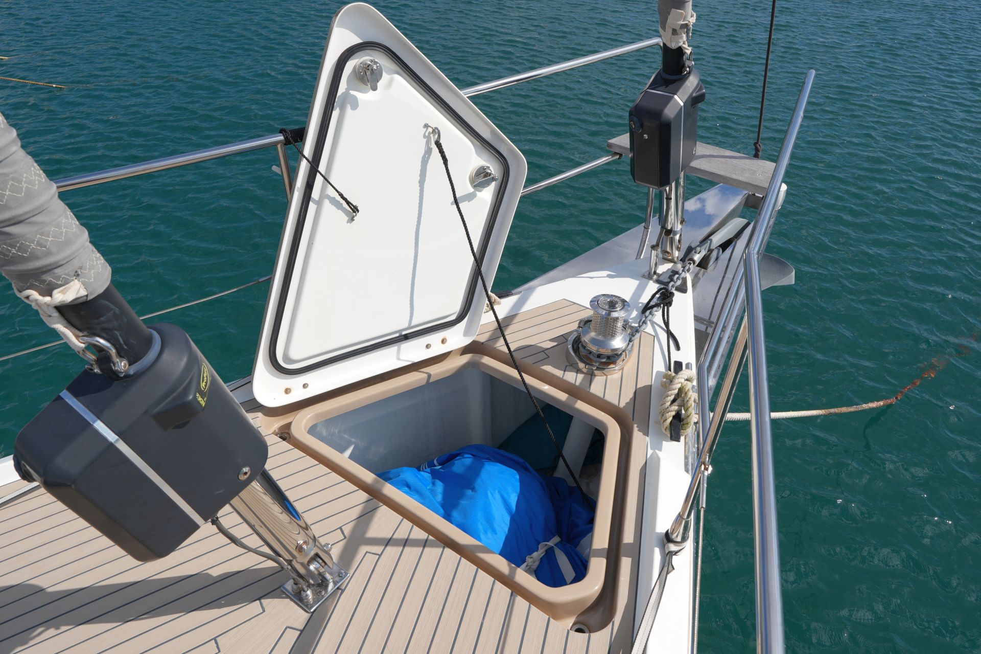 - Große Segellast im Vorschiff mit Stauraum für Fender, Festmacher und Segel