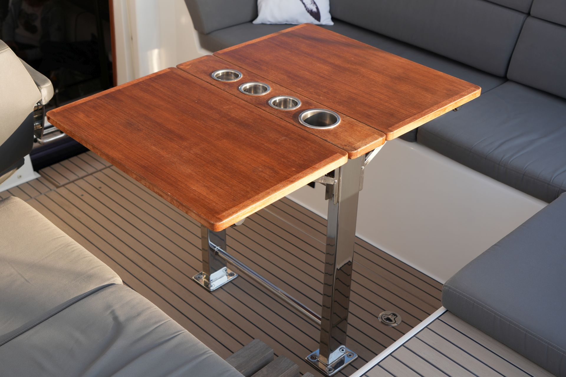 - Klappbarer Cockpittisch in Teak und Edelstahl