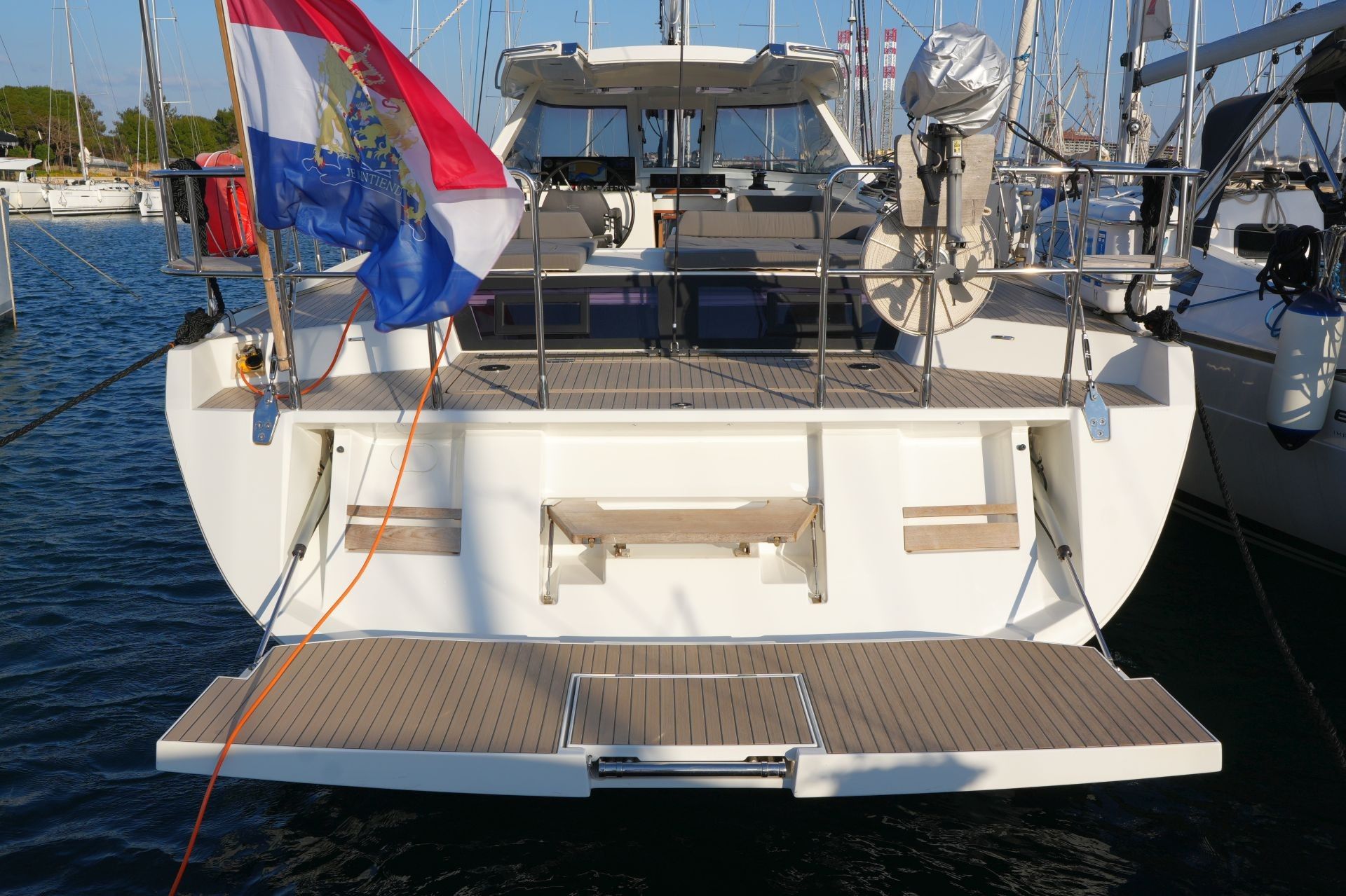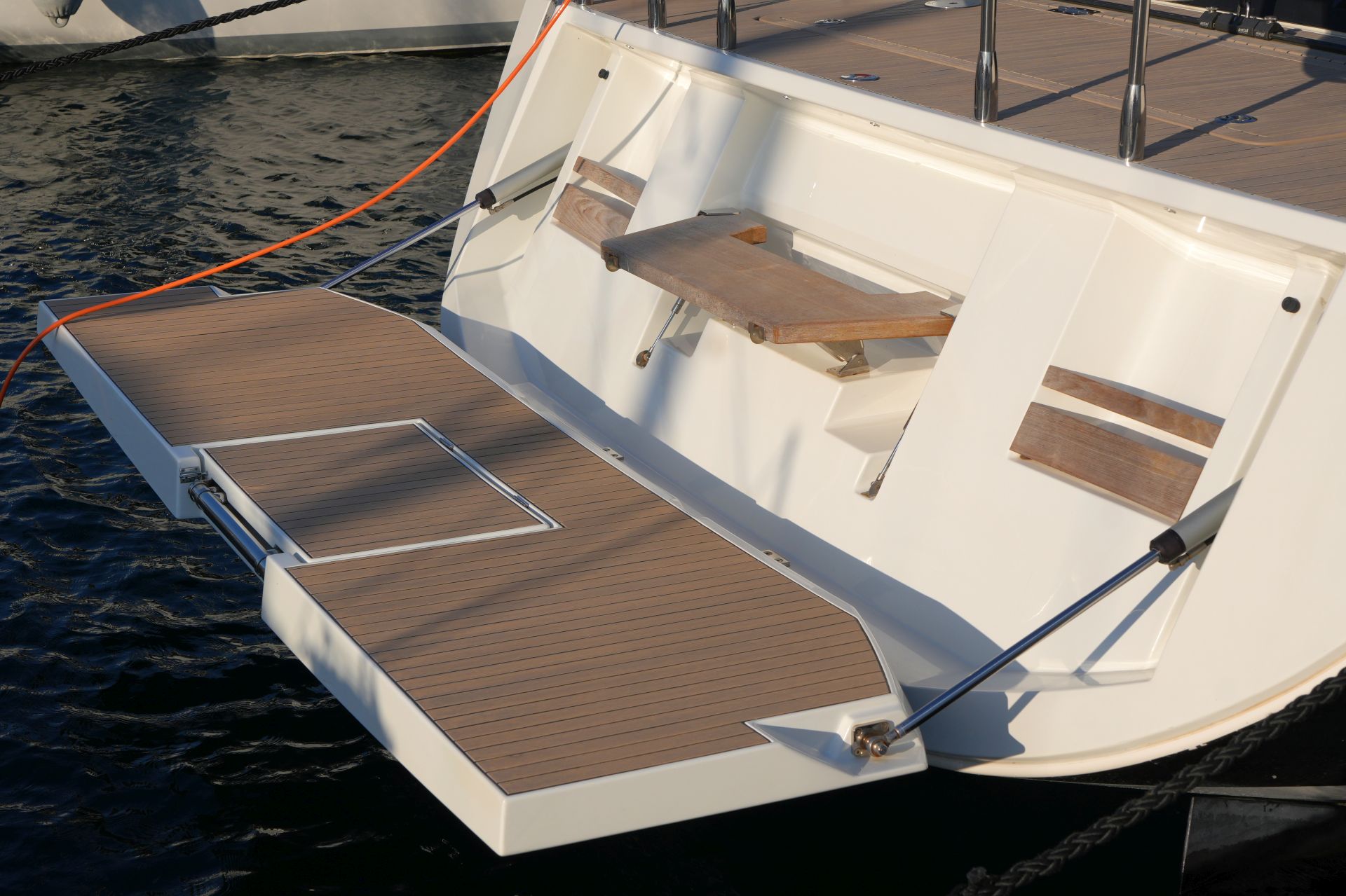 - Zusätzliche, ausziehbare Sicherheitsleiter im Heckspiegel und zwei Stufen außen auf der Badeplattform