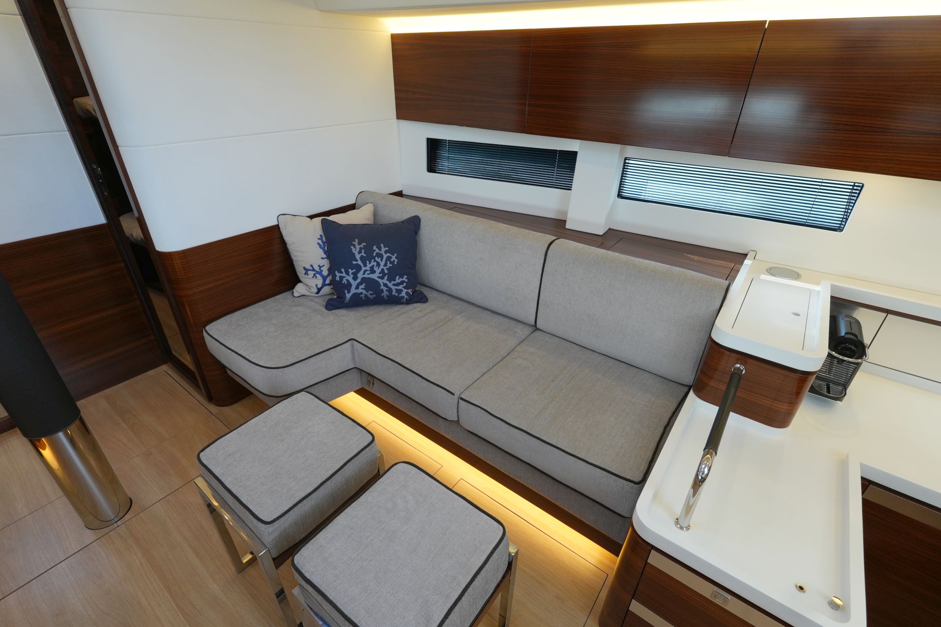 - L-förmiges Sofa an Steuerbord