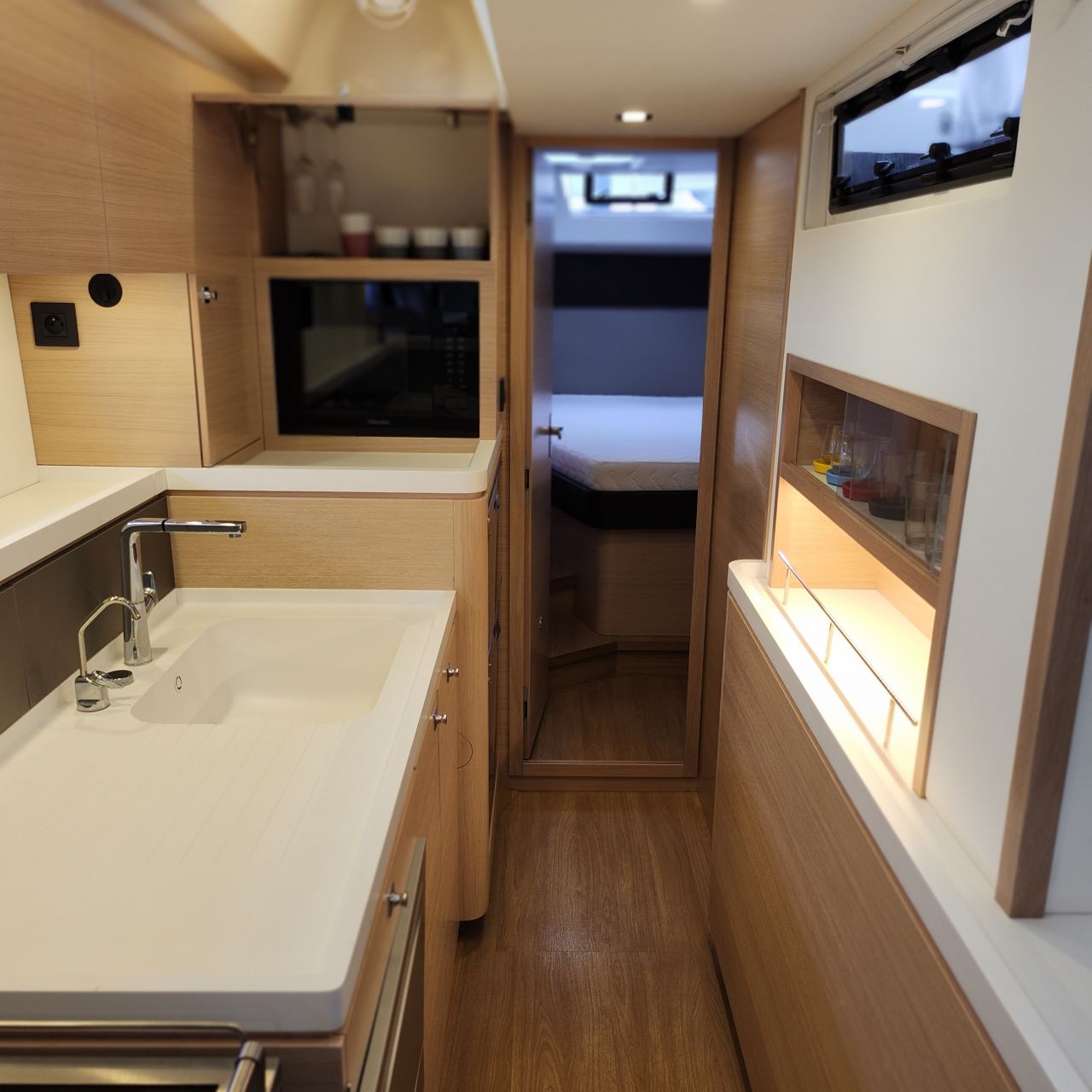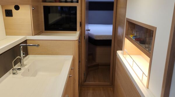 - Längspantry im Durchgang zur Achterkabine an Steuerbord