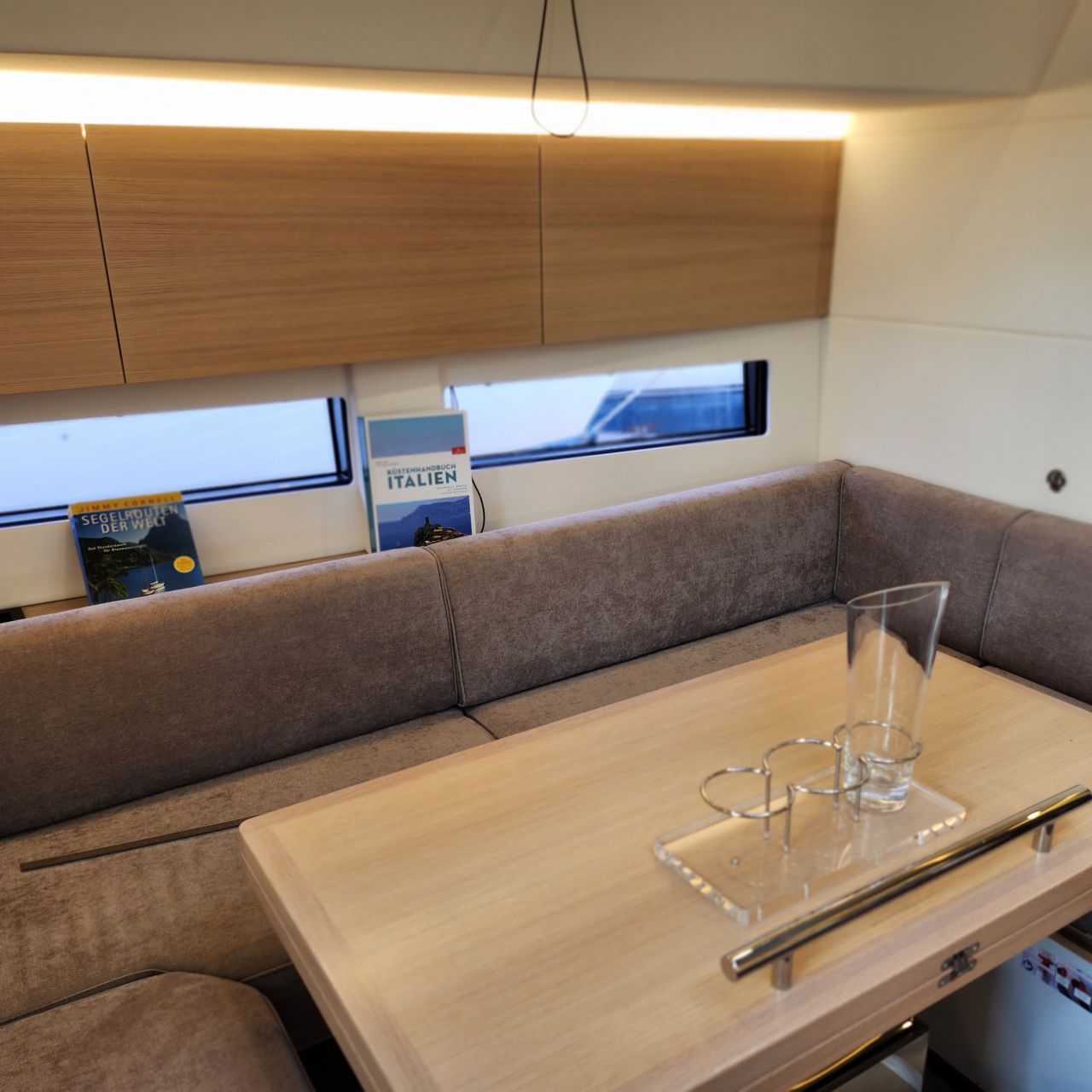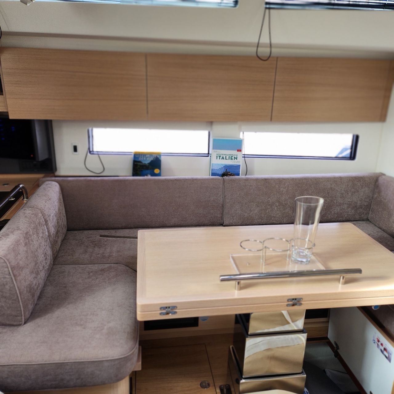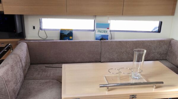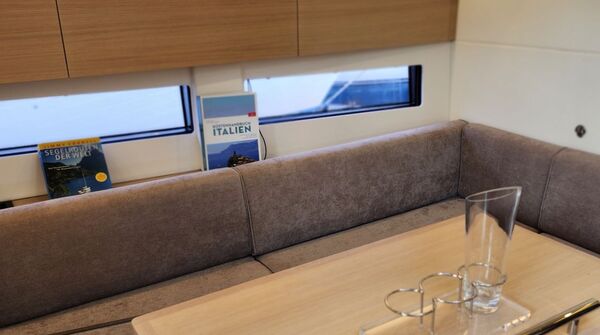 - Großzügiger, geräumiger Salon mit U-förmiger Sitzgruppe an Backbord