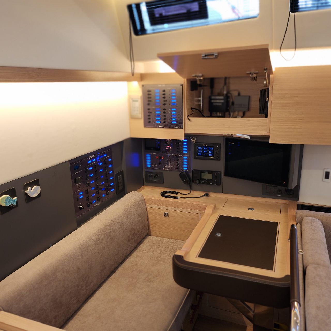 - Kartentisch in Fahrtrichtung eingebaut an Backbord