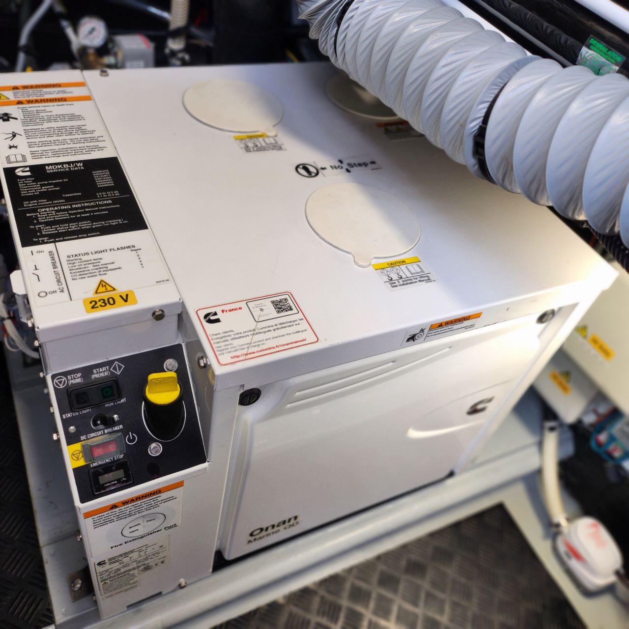 - Gekapselter 3 Zylinder-Dieselgenerator ONAN 8 KW (Betriebsstunden Stand Mai 2024: 58 h)