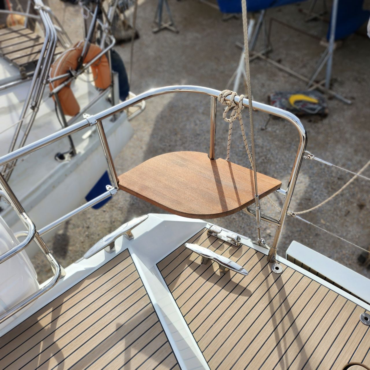 - Klappbarer Cockpittisch in Teak und Edelstahl